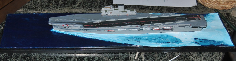 The hull is now getting ready to be put on a base. Ark Royal seems to have been diving head on in any kind of sea so that is the look I am after.