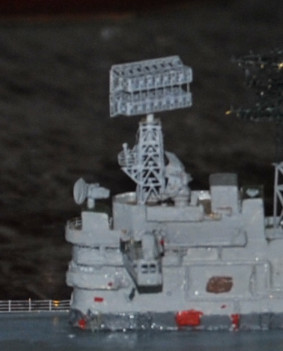 And after that I assembled the rest of the masts on the island. Mainmast and the base for the forward 965 were very quick builds. The parabolic antenna thing on top of the bridge was useless however (casting sprue on the face of the parabolic dish) so it was replaced by a soviet Kite Screech radar from the spares box.