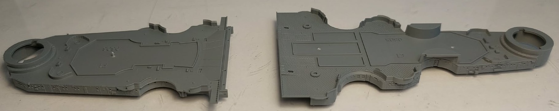 The superstructure components are among the parts that are not mounted on the sprue. The base of the superstructure consists of two pieces, which include the barbettes for gun turrets B and C.