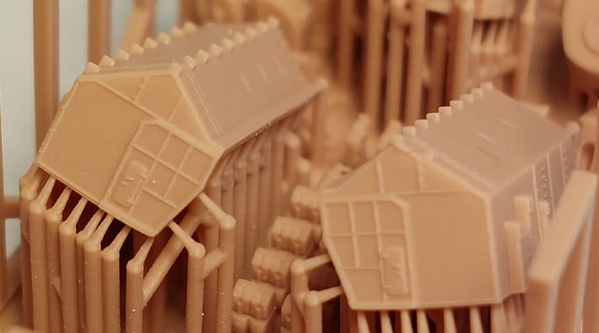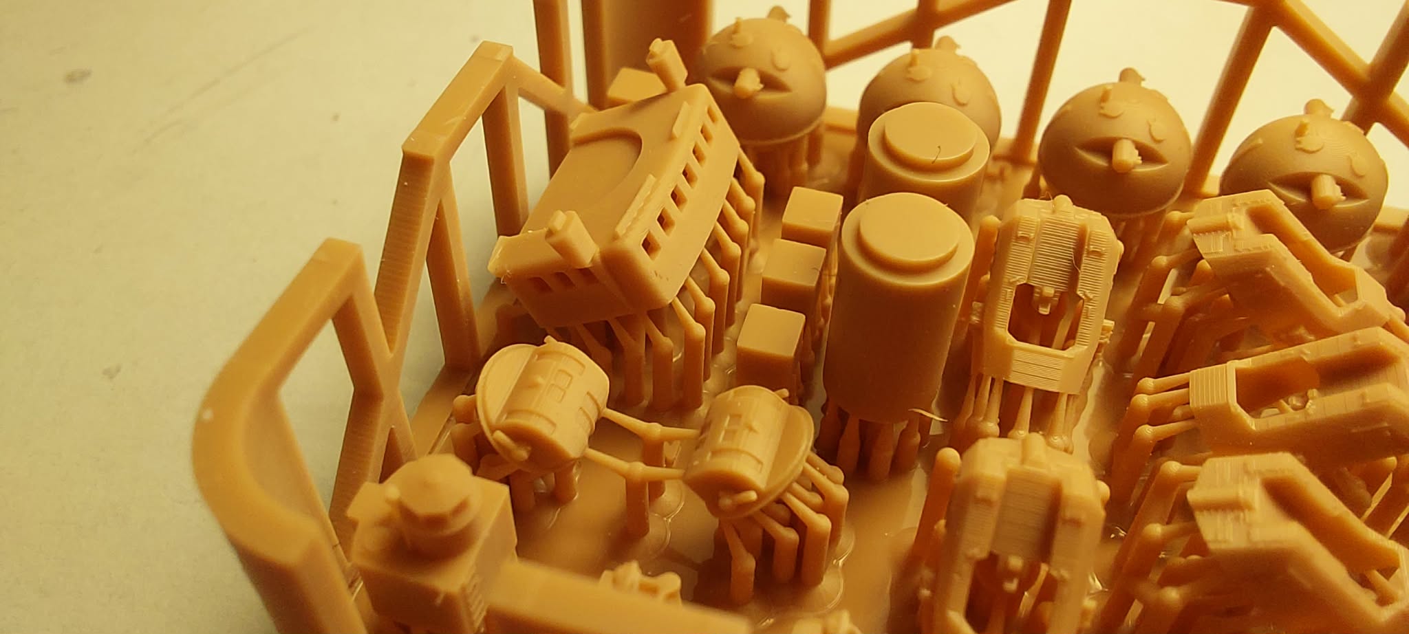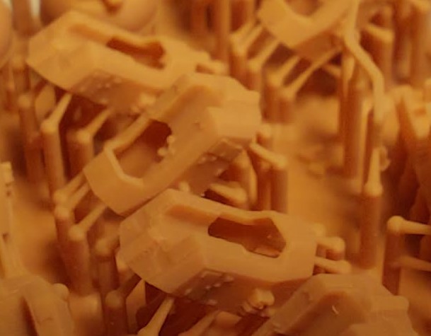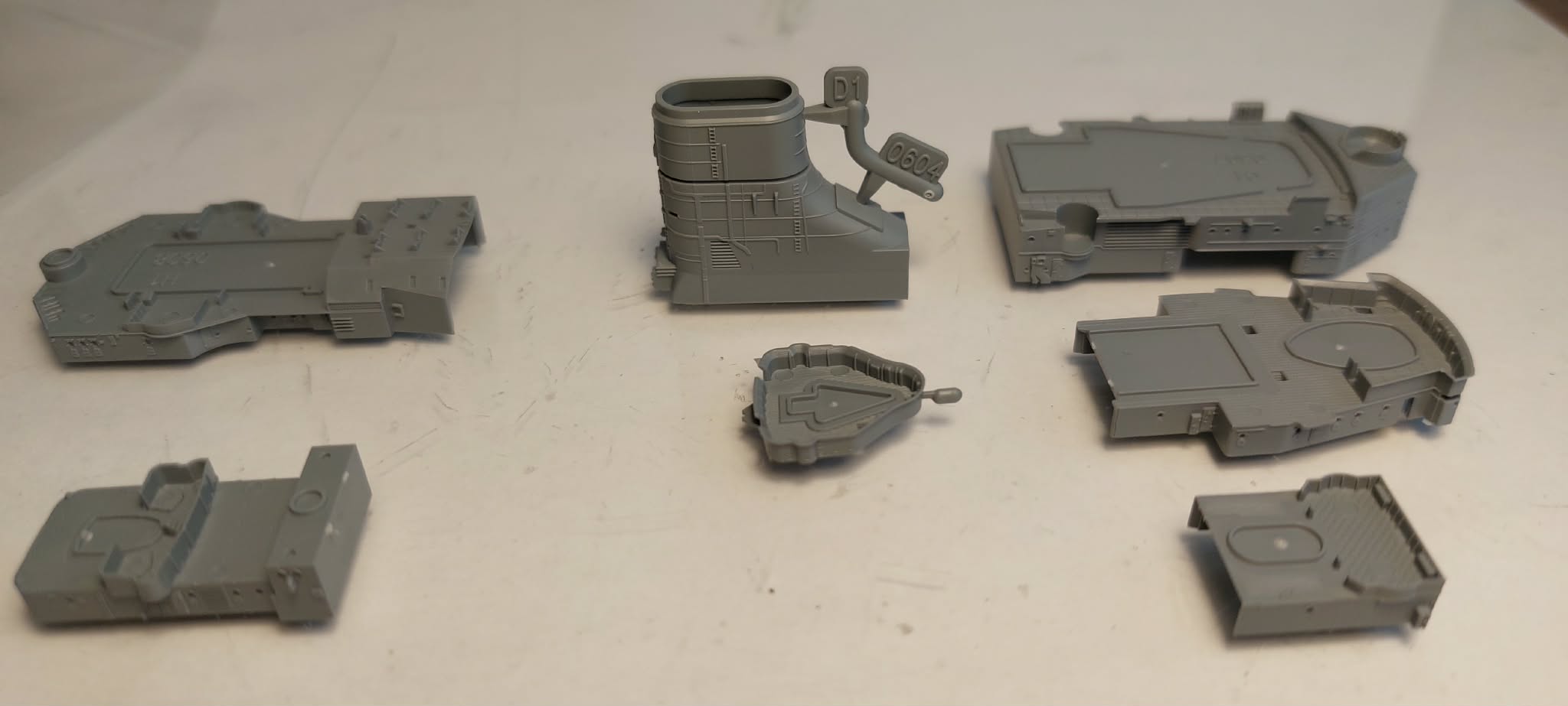 If you’d like to continue, there are still quite a few parts waiting for you. As I mentioned, the kit includes two blocks of 3D-printed parts, photo-etched parts, and turned metal parts. The first 3D block contains the hangar and the elements of the armored command bridge, printed with breathtaking detail.