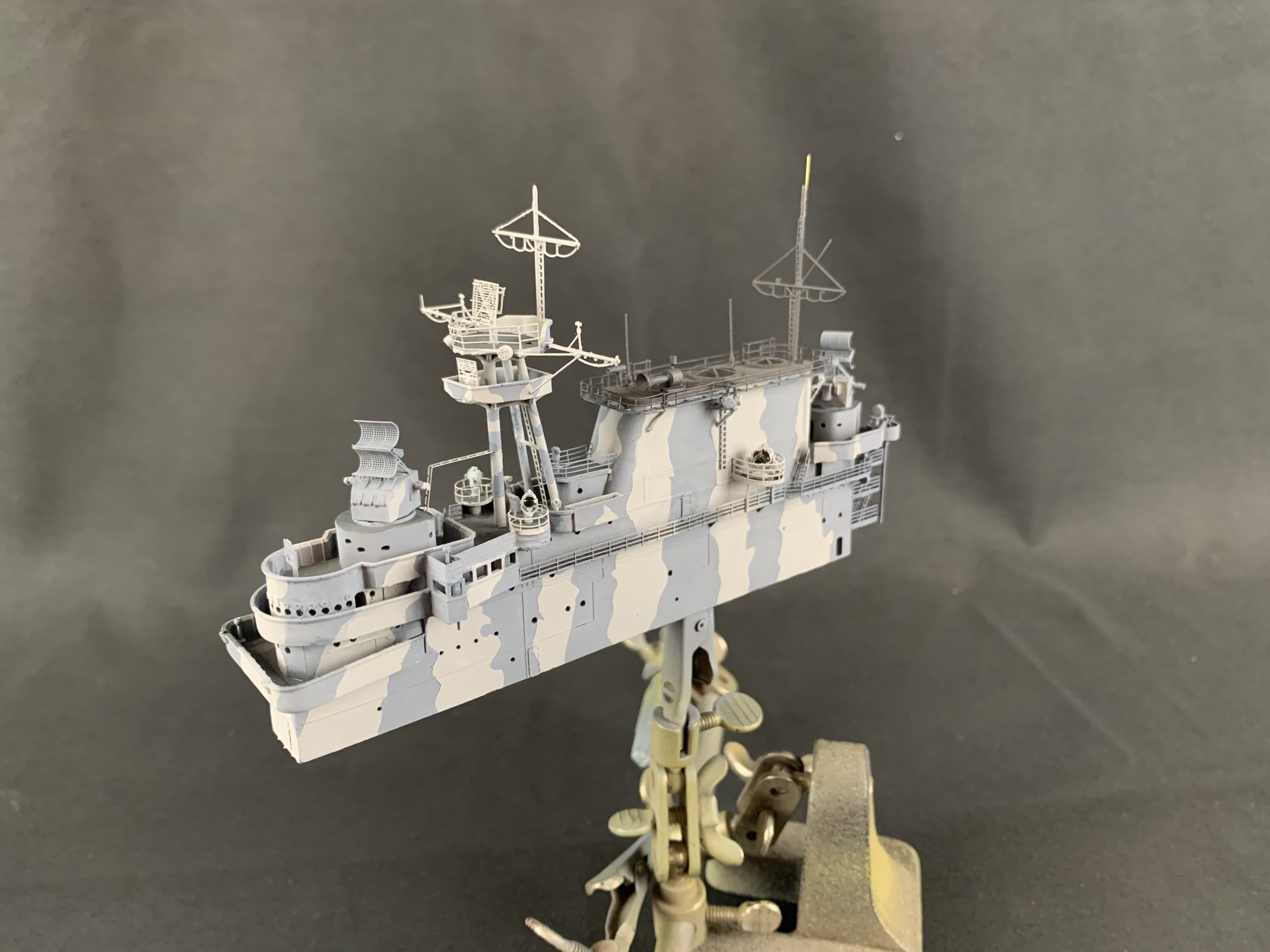 Working on Trumpeter's 1/350 Hornet. Island is from Model Monkey with GMM & Eduard PE, Black Cat 3D printed parts, and some good old styrene sheet and brass rod. The island is about ready for gloss coat and weathering.