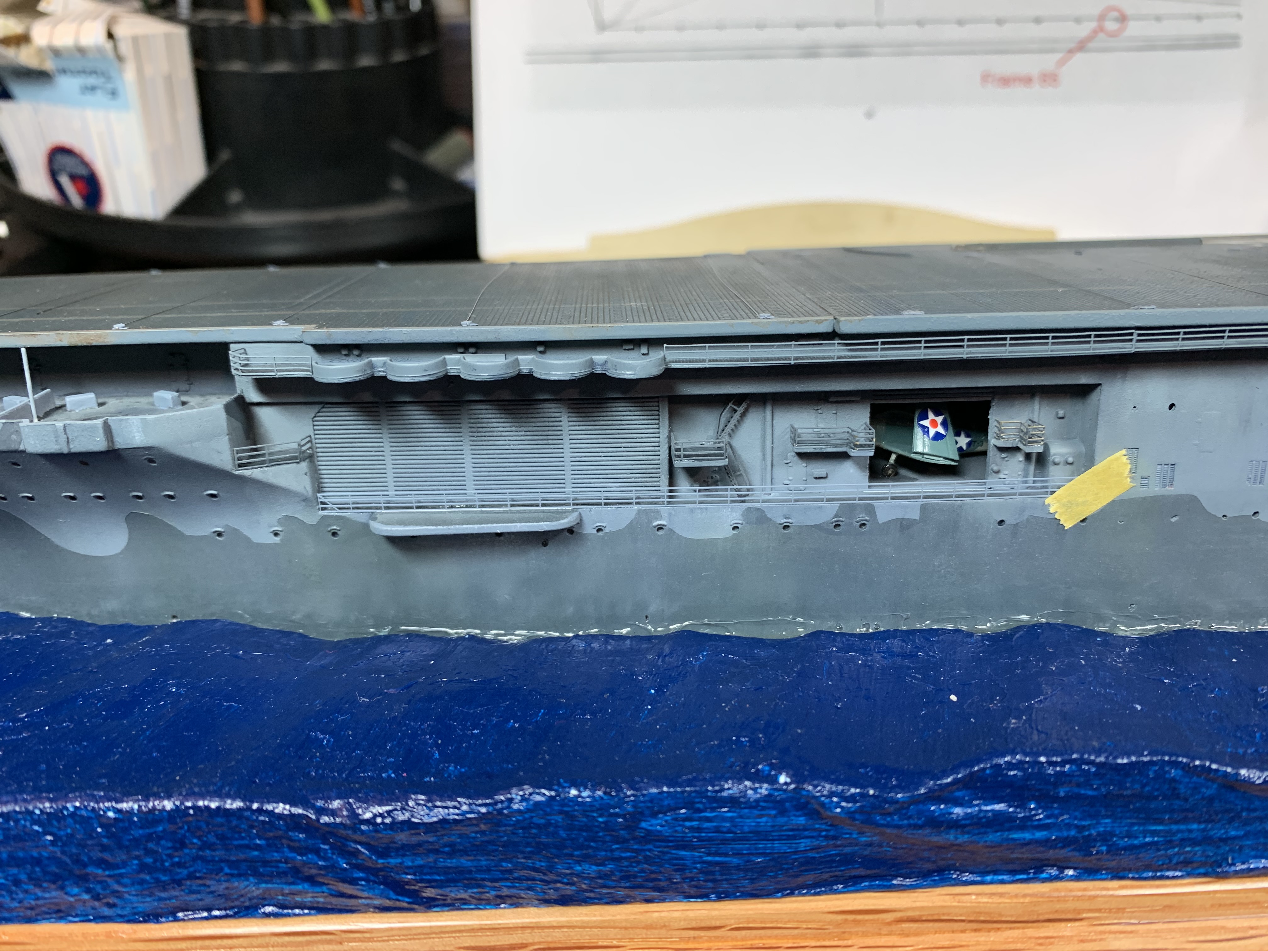 Martin, are you portraying Hornet at Santa Cruz? If you are and don't already know this, there are two 20mm mounts at port quarter of hanger deck level. I believe they located near the most forward of the rear set of hanger doors. Not sure if any are located at same location on starboard side. Noticed this when looking at wreck photos.