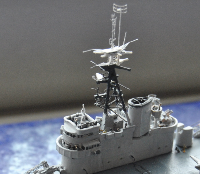 As both ships had lattice masts I could use the C88 from the new kit and wriggle it into place. Now the only thng left to do on the island is rigging and rebuild the radars. I'm working 'inside-out' this time so rigging the mast is happening first.