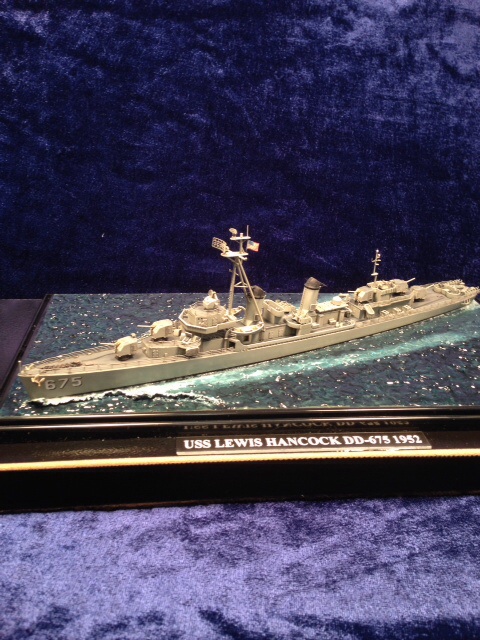 I need a basic understanding of the configuration of the USS Lewis Hancock DD-675 as she sailed out of Newport in Sept 1952. The Trumpeter kit is quite good for "late war" and would be fine to represent her as she sailed from San Diego to Newport after recommissioning. I know the ship was in Newport for nearly a year for refitting / modernization. The photographs I have obtained of her Korean deployment all show the tripod mainmast and circular fire control radar as opposed to the square birdcage style. I also understand there were two hedgehog devices forward, I presume below the bridge. I know the ship had the forward torpedo launchers removed and replaced by 40 mm tubs. I know the tubs remained but cannot verify if the guns remained. other concerns include the existence and configuration of depth charge racks and 20mm tubs on the aft deck near the racks. Like I said, I could really use some help with the overall configuration of the ship.