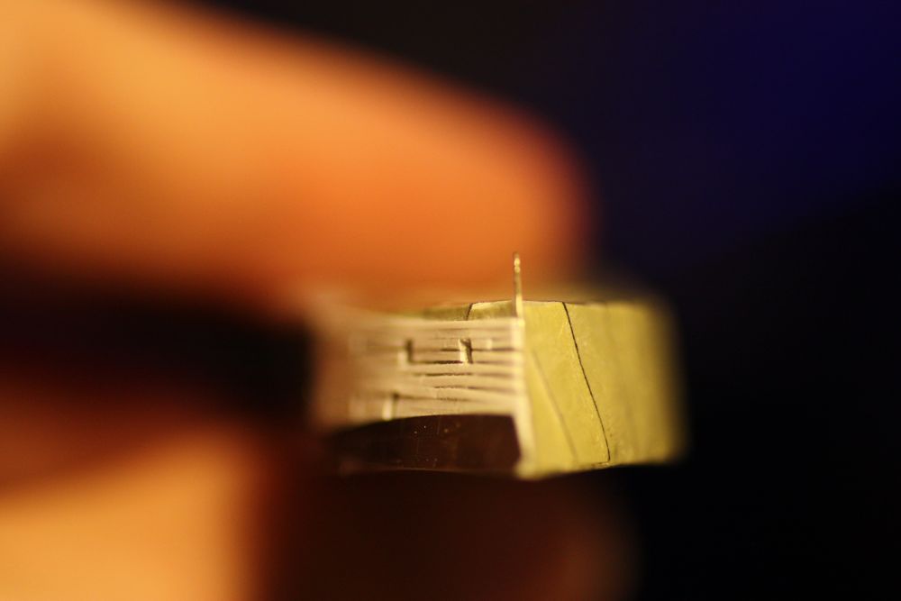 just be able to pull it off. Here is the progress so far. Starts out looking almost exactly like the 350th scale version, except it's 1/4 the size.
