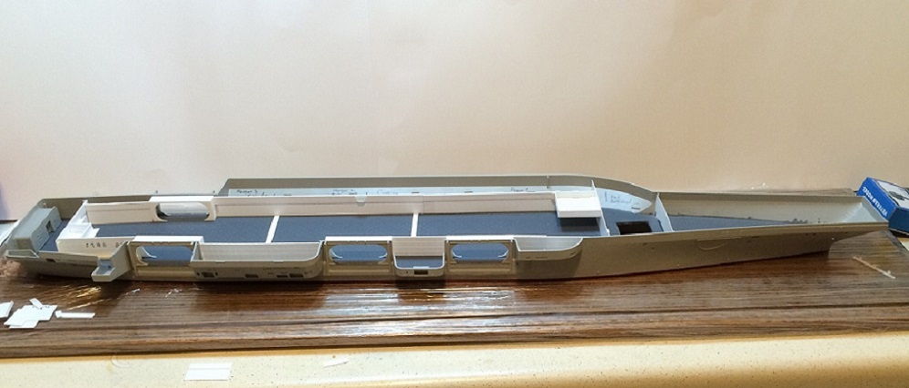 Lookin good John! One suggestion that I learned the hard way from doing so many of these: Install the top portion of the area that juts out between the two forward elevators before you go much farther along. That part can leave you a pretty nasty seam that can be difficult to deal with once too many other details have been added.