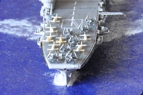 I am also going to try a new trick by spraying a clear decal sheet with gunship gray and cutting out the non skid walkways on the decks of the island and see if i can create the haze gray borders on the deck. I have been working on this ship, more off than on, for 4 years now. Time to get her done. I need to finish Kearsarge to get the 1957 SCB-125 Intrepid done. Both air wings are completed so that is a good start.