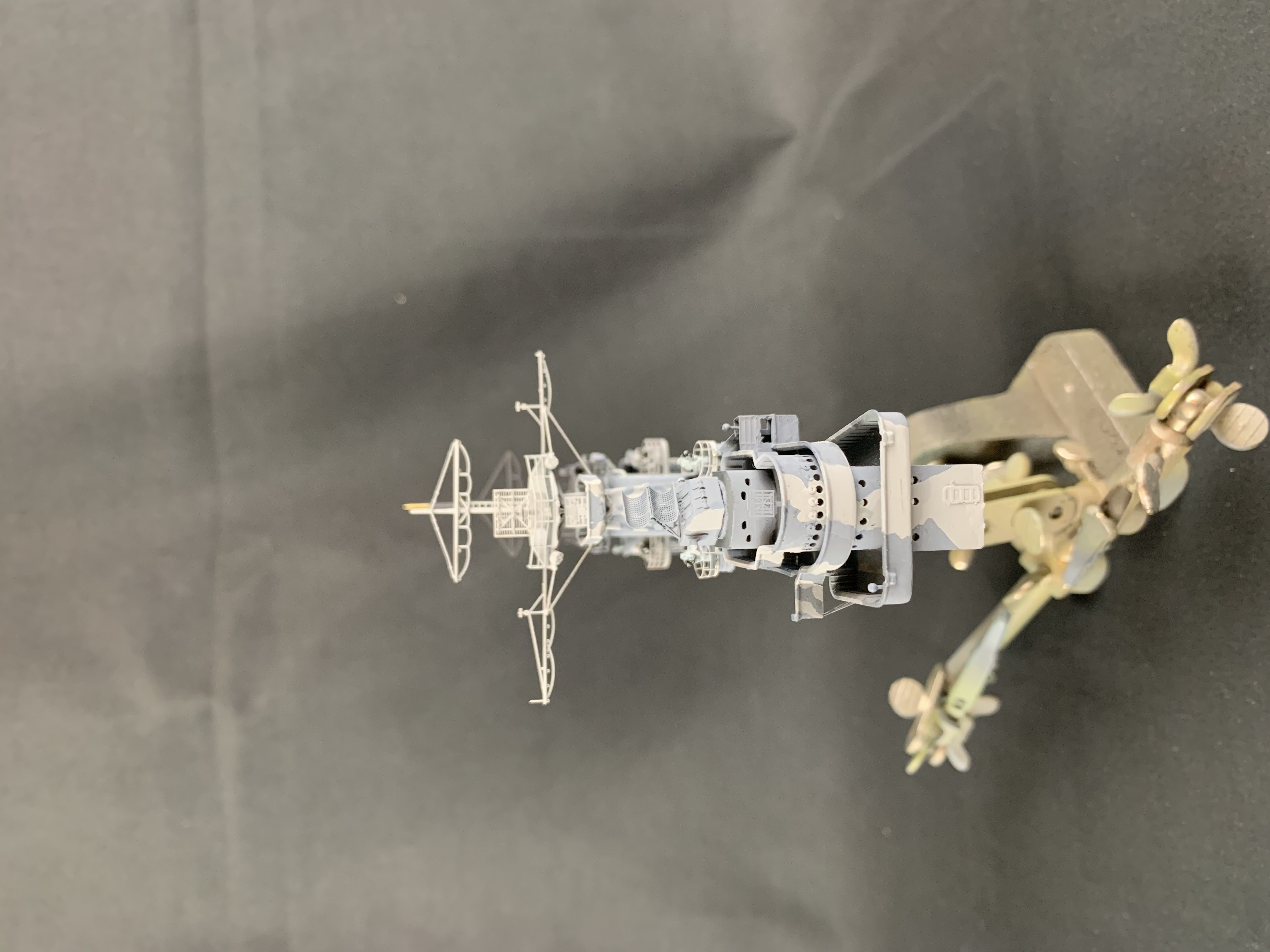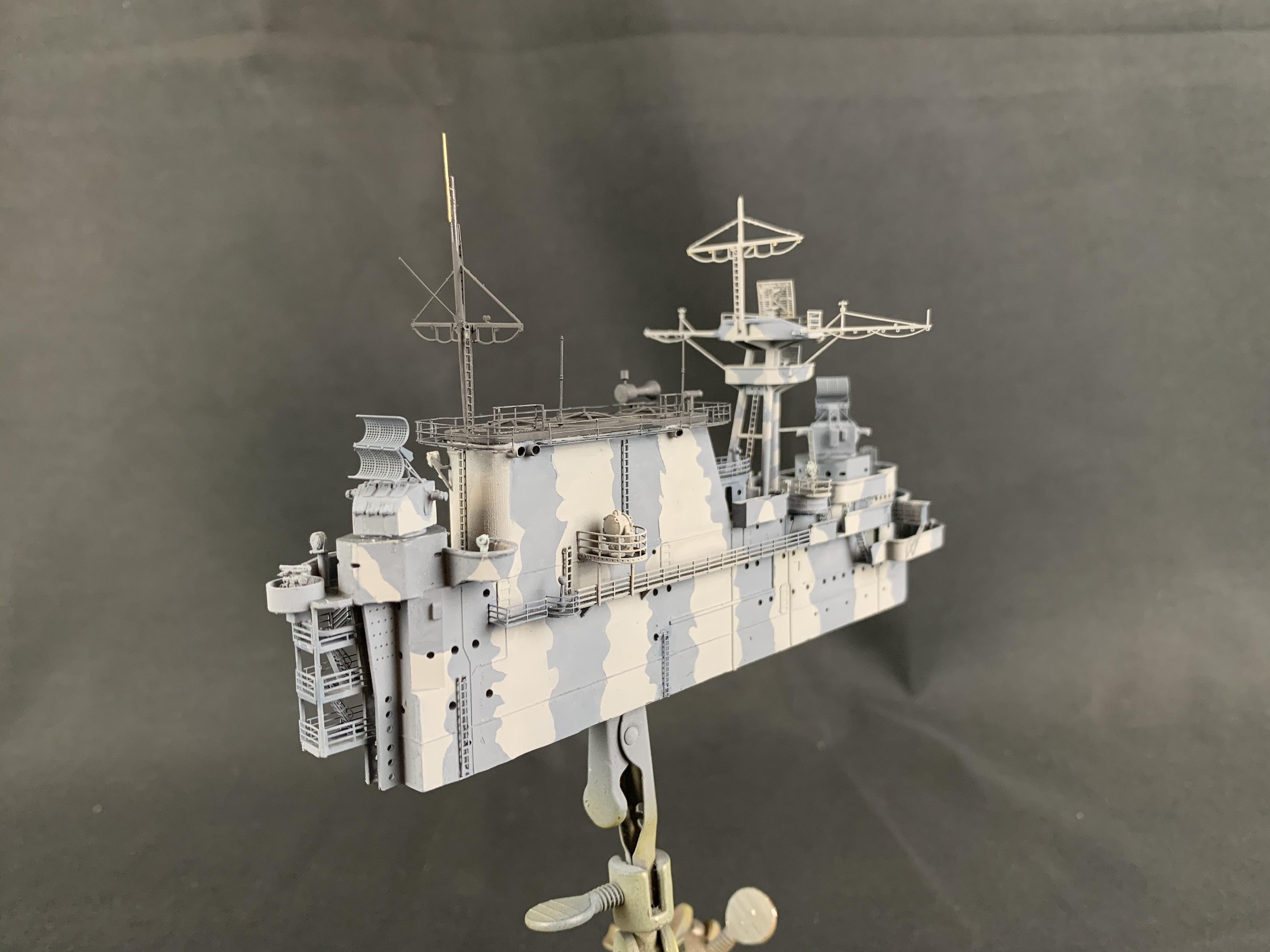 Working on Trumpeter's 1/350 Hornet. Island is from Model Monkey with GMM & Eduard PE, Black Cat 3D printed parts, and some good old styrene sheet and brass rod. The island is about ready for gloss coat and weathering.