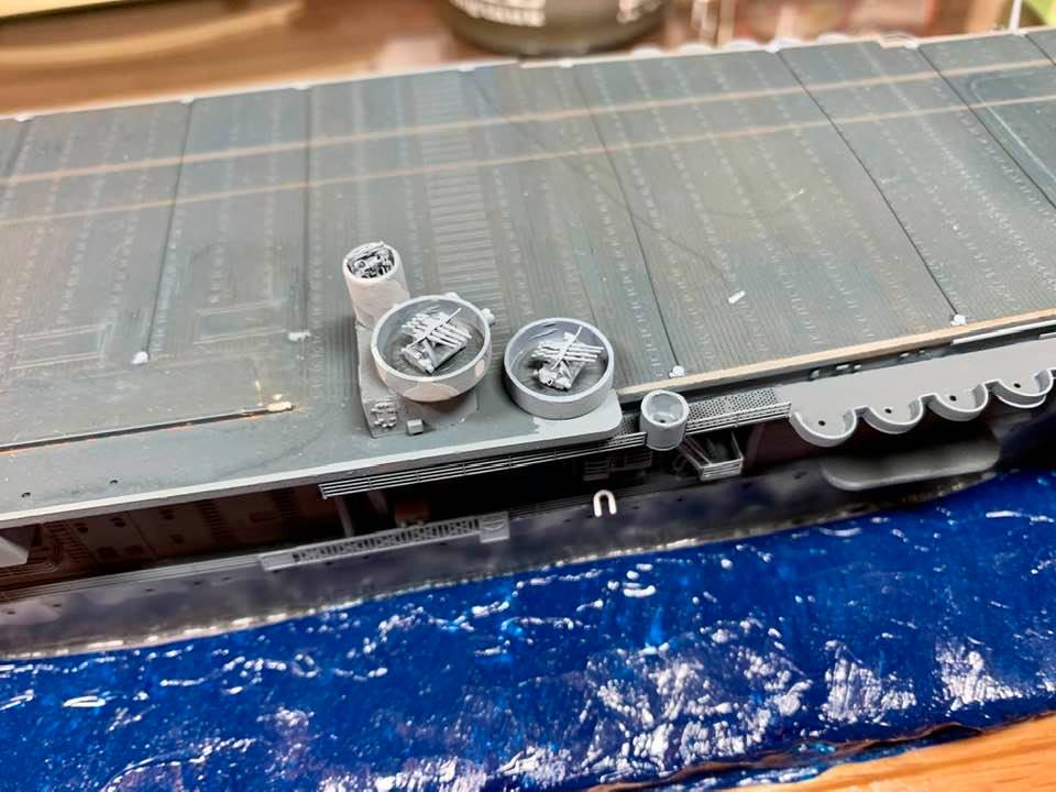 Martin, are you portraying Hornet at Santa Cruz? If you are and don't already know this, there are two 20mm mounts at port quarter of hanger deck level. I believe they located near the most forward of the rear set of hanger doors. Not sure if any are located at same location on starboard side. Noticed this when looking at wreck photos.