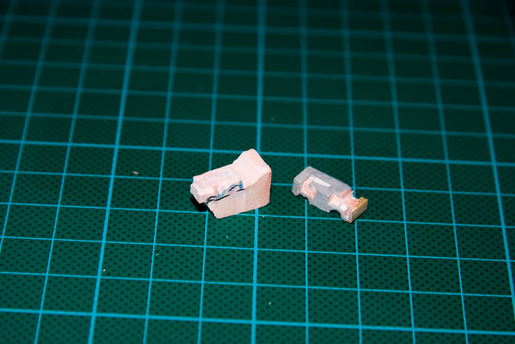 I've been quite busy in the last few days. I restarted the 1/700 tractors production. And I'm working hard on their 1/350 couterparts. Here's a pic, I'm still using my pink plaster, which is great for carving.