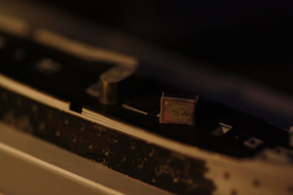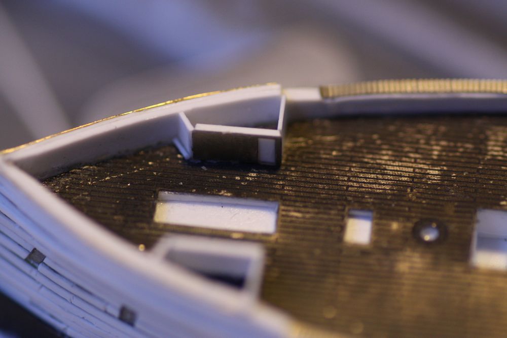 Trying to capture the brass rod running along the top edge of the bulwarks... camera focus field not very effective in these shots, unfortunately.