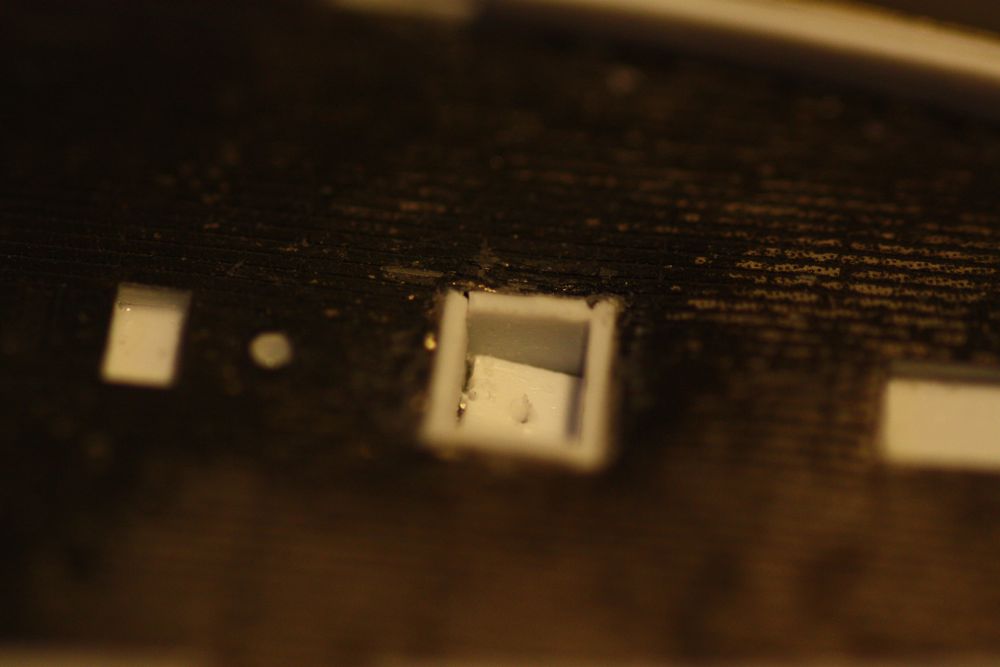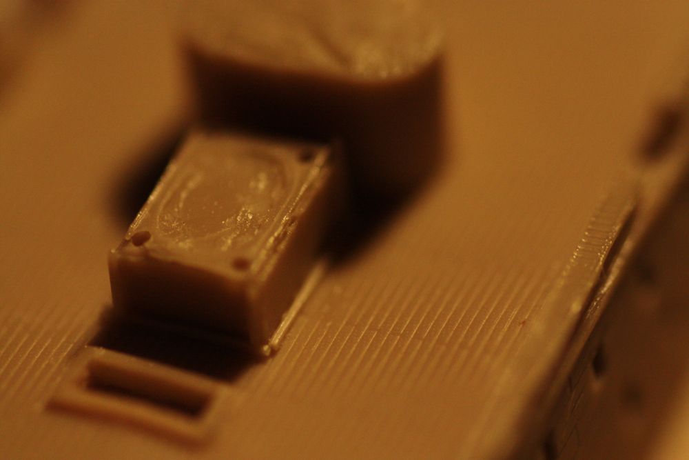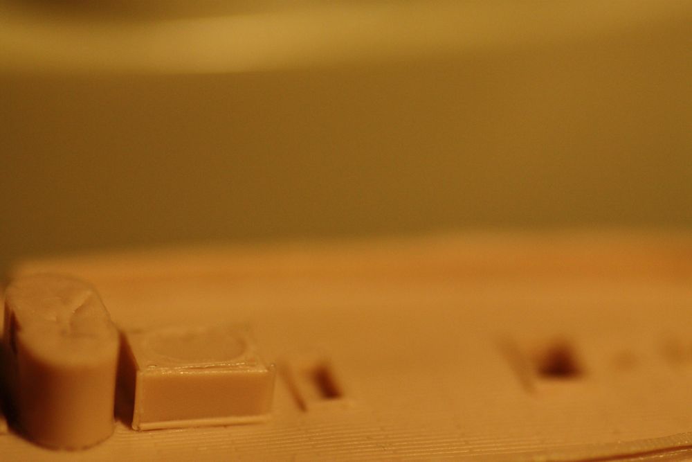 Bits of mold material sticking out of different nooks and crannies...
