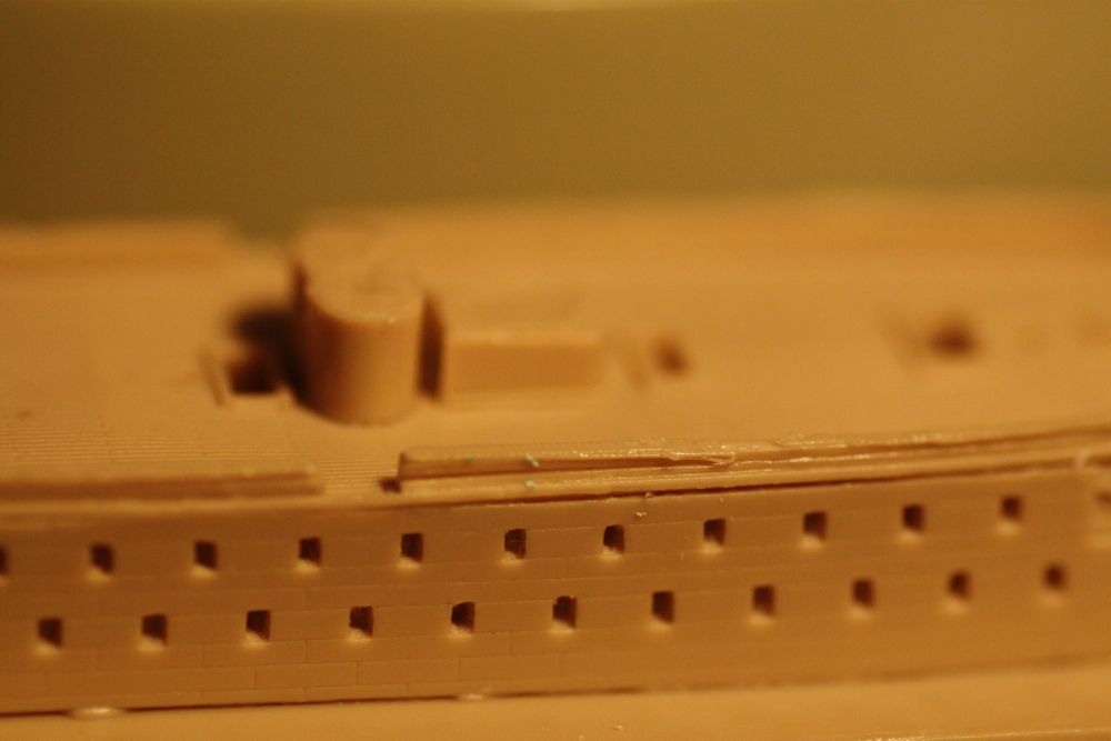 The hammock stowage detail on the top of the bulwarks cast well on some casts, and poorly on others. Not sure why this is the case.