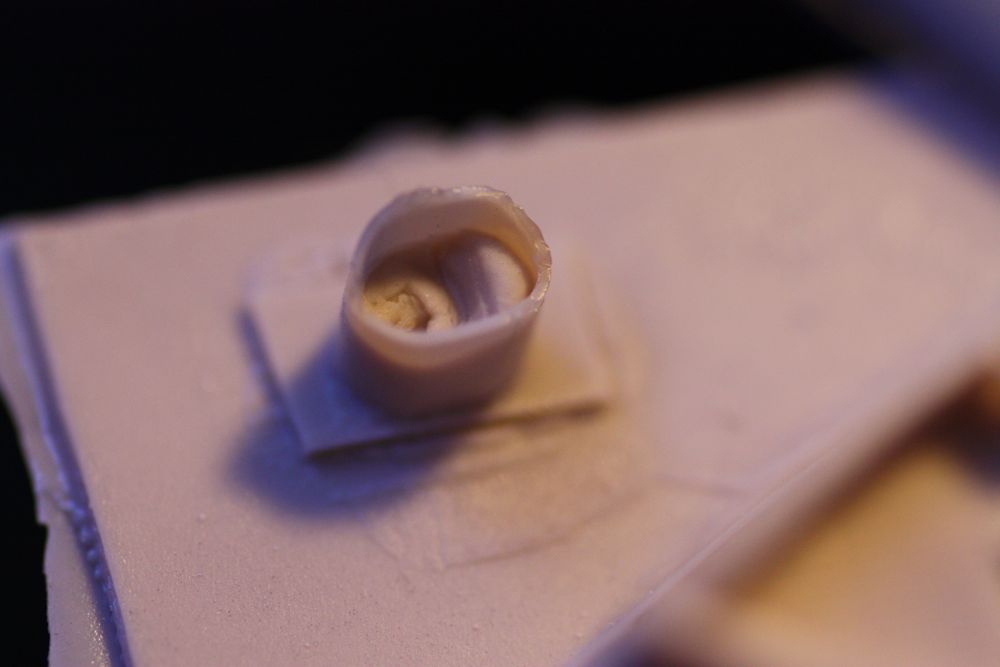 Building the two flanking deck houses at the bow. I think they might actually have been bathrooms. :big_grin: These would be covered later by a forecastle deck, but each had a doorway facing inward. I felt if I could create and cast them them open topped, the doorway could be hollowed out later and an actual space revealed behind it. The question is, would it cast?