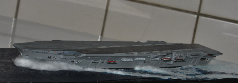 The hull is now getting ready to be put on a base. Ark Royal seems to have been diving head on in any kind of sea so that is the look I am after.