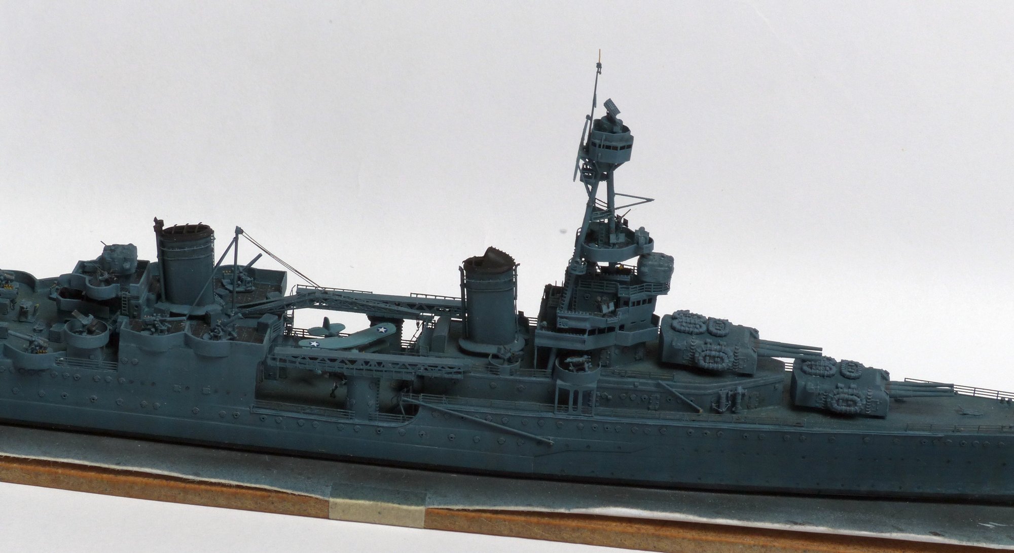[url=https://flic.kr/p/2jtGSU6][img]https://live.staticflickr.com/65535/50196635461_8765466baa.jpg[/img][/url] [url=https://flic.kr/p/2jtE4N3][img]https://live.staticflickr.com/65535/50196086778_88787aef28.jpg[/img][/url] [b]Aftermarket parts used:[/b] [list][*]Micro Master USN 8"/55 Triple Gun Mounts [*]3dmodelparts 5in/25 secondary guns (added custom PE railings), Quadruple 1.1" 28-mm Cannons, 5-inch-25 Guns, Mk 19 Gun Directors and 1/700 Naval Figures (from various sets) [*]Shelf Oddity 20mm Oerlikon Single Machine Gun, 20mm ammunition boxes, USN Searchlights, Deck winch, Life rafts (Carley floats) and 0.06mm Rigging Metal Wire [*]Trumpeter SOC-3 Seagull floatplanes (modified, custom PE added) [*]Gold Medal Models USN Cruiser/Destroyer set (catapults, radars, cranes, railings…) plus individual PE details from various sets by LionRoar, Flyhawk and Eduard [/list]
