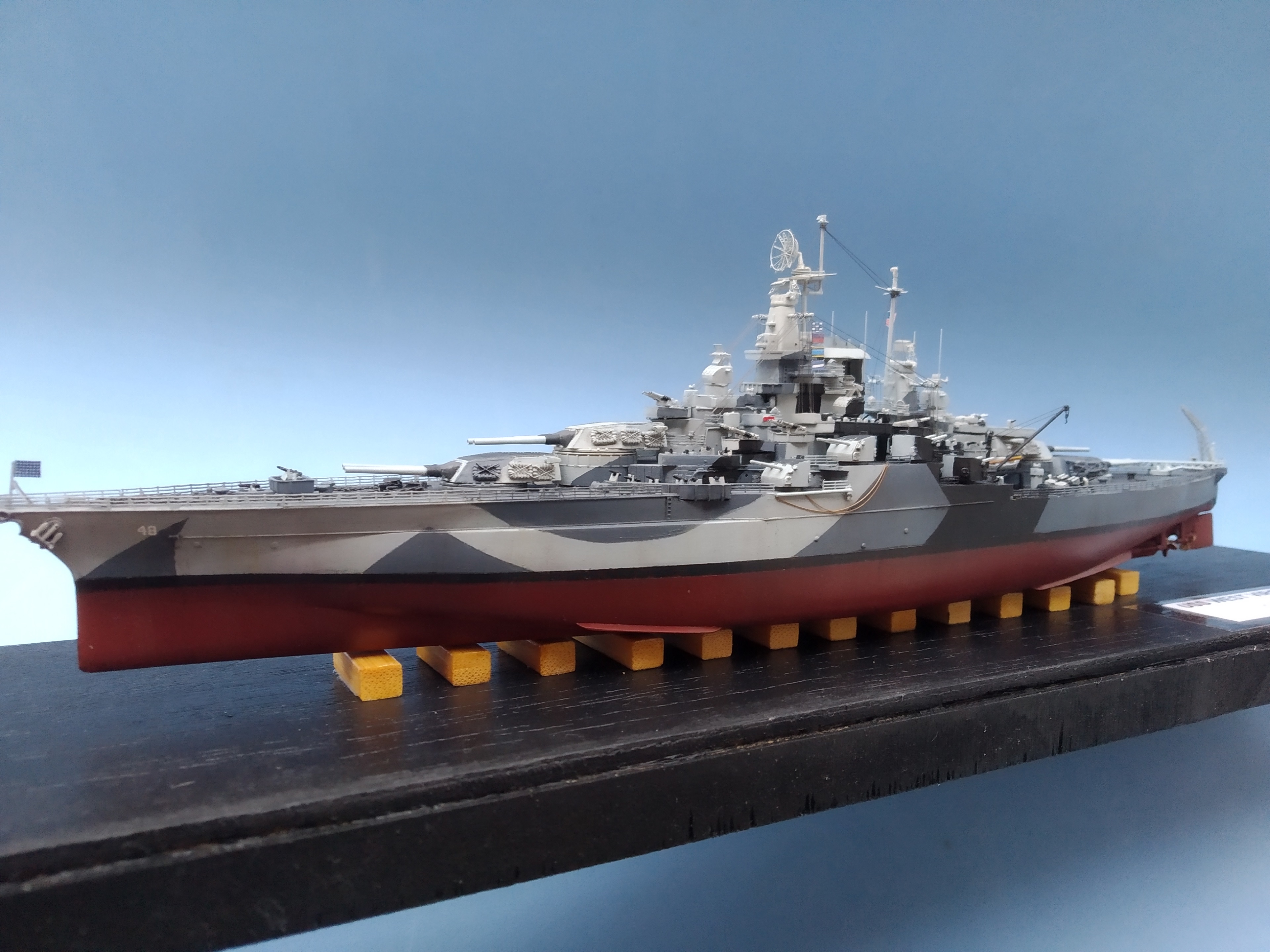 Just finished this Trumpeter kit. A small and somewhat complicated ship. Generic photo-etched parts and Aber cannons have been used. All the anti-aircraft artillery comes from other kits that are somewhat better detailed. The metal masts, chains and various small details have been rebuilt. The paints used have been Vallejo 70903 Intermediate blue, 70995 German Grey, 70907 Pale Gray and 70947 Dark Vermillion and 70985 Hull Red. Riggin with Unicaenis and Veevus.
