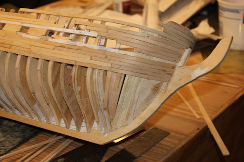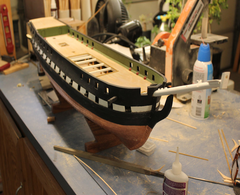 Been working on this as I get bored with the ratlines on my Columbus build. I realize it looks a little rough, but, the final product is what is important. I may not build in the traditional way, but, again, end results are what counts. when the coppering is done, I will install the gun deck furniture and cannon. Then I will build the spar deck. Somewhere in there I will do the stern and quarter galleries although the finish work like the window framing and scroll work will be done when the spar deck furniture and cannon have been installed. Hope you like how it is progressing and I apologize for the long times between posting. I am cutting out bulkheads and keels for the Delaware and Germantown too, so, lots to do.