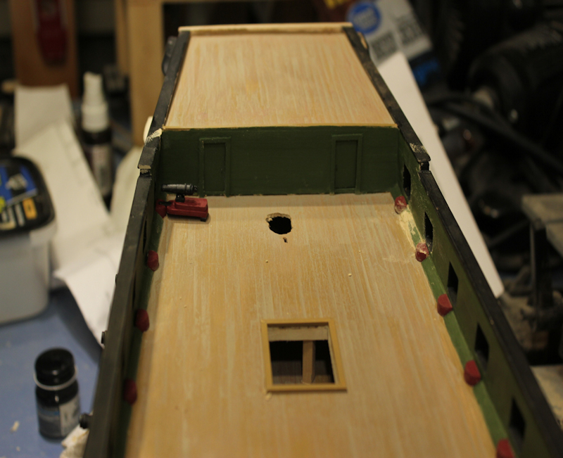 Working on spar deck and poop. stern and quarter galleries and head area are next. followed by the deck furniture. I am gluing the bulkheads to the keel for the Delaware ( I suppose I should start build logs for it), and will start cutting out the bulkheads and keel for the Germantown (also start a build log), in a week or so. I usually plank the hull before I cut out the gun ports, but, I am taking a different approach with the next several models and will frame up the ports before planking. I was always in a hurry to get the planking done so it looked like something before, but, it was so much work that way cutting the ports out and getting them lined up properly the first time. No, this time I will layout the ports before planking as it is easier to fix misaligned ports at that stage.