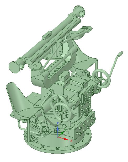 Here is a picture of the work I've done on the upper equipment that is now located in a separate design file - this was done as the original design file for the gun mount was getting rather large and beginning to slow the CPU down.