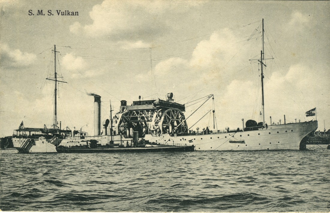 The plan ( currently) is to depict the my model of the SMS Vulkan after World War One -- beyond useful service - neglected ...