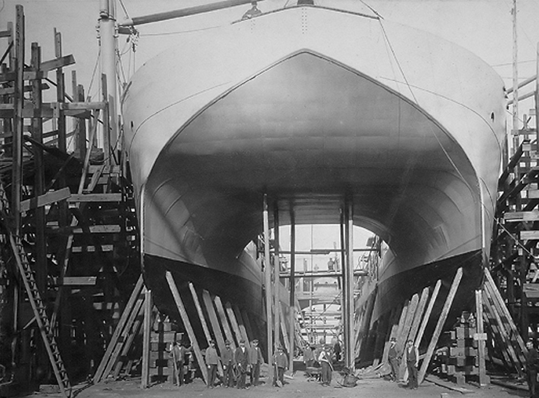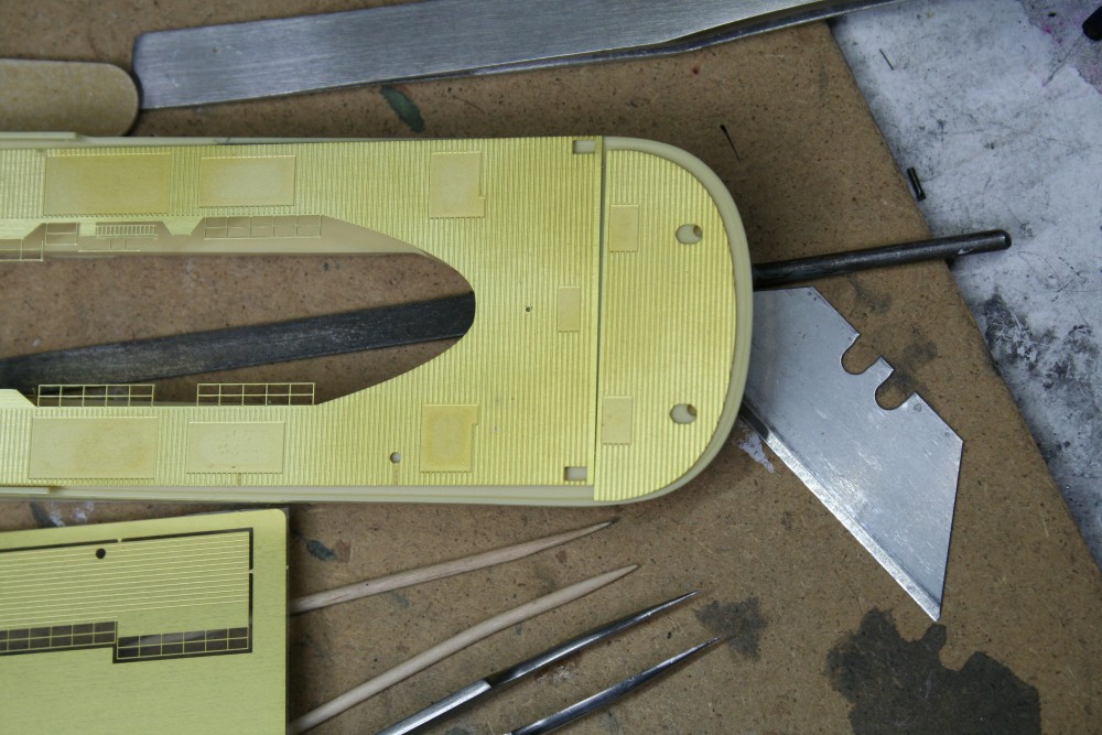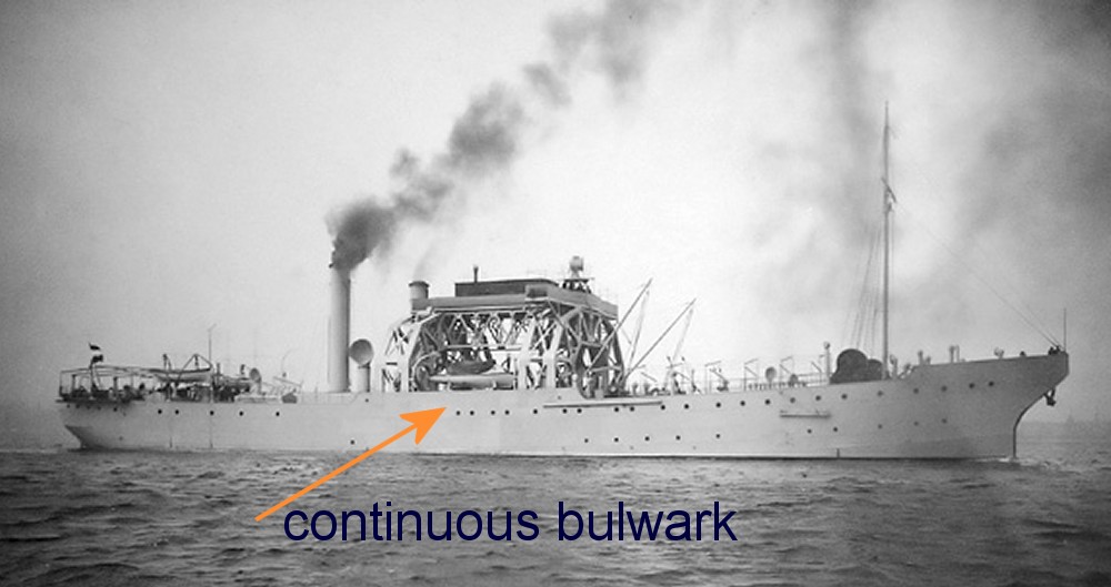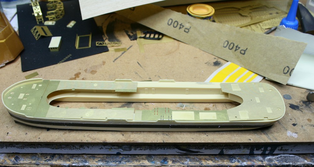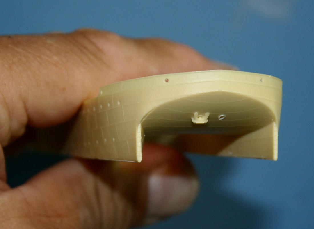 A useful view of the fwd area of the inner area between the hulls show that there are some missing portholes in the inside faces of the hulls,