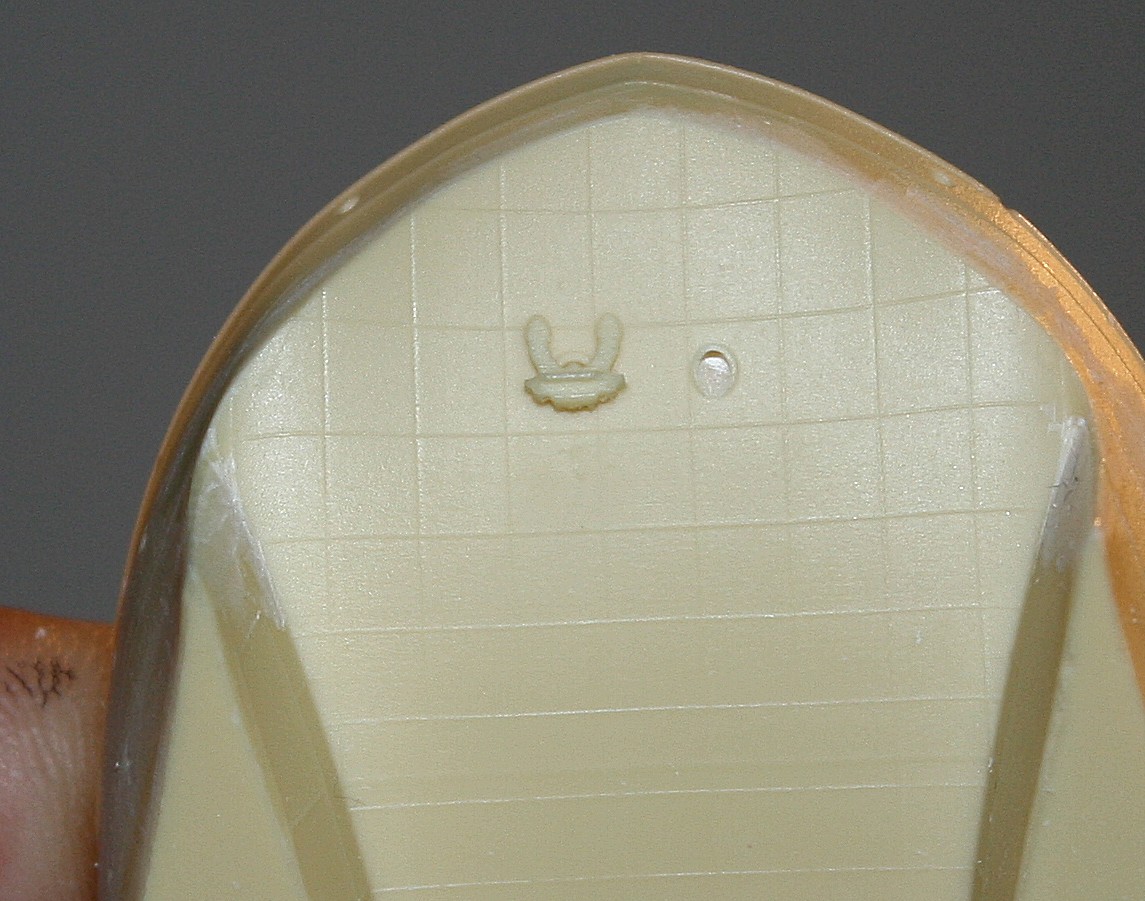 Study of photos reveal the aft end of the casting in the area sub recovery well' twixt the hulls to be devoid of some features