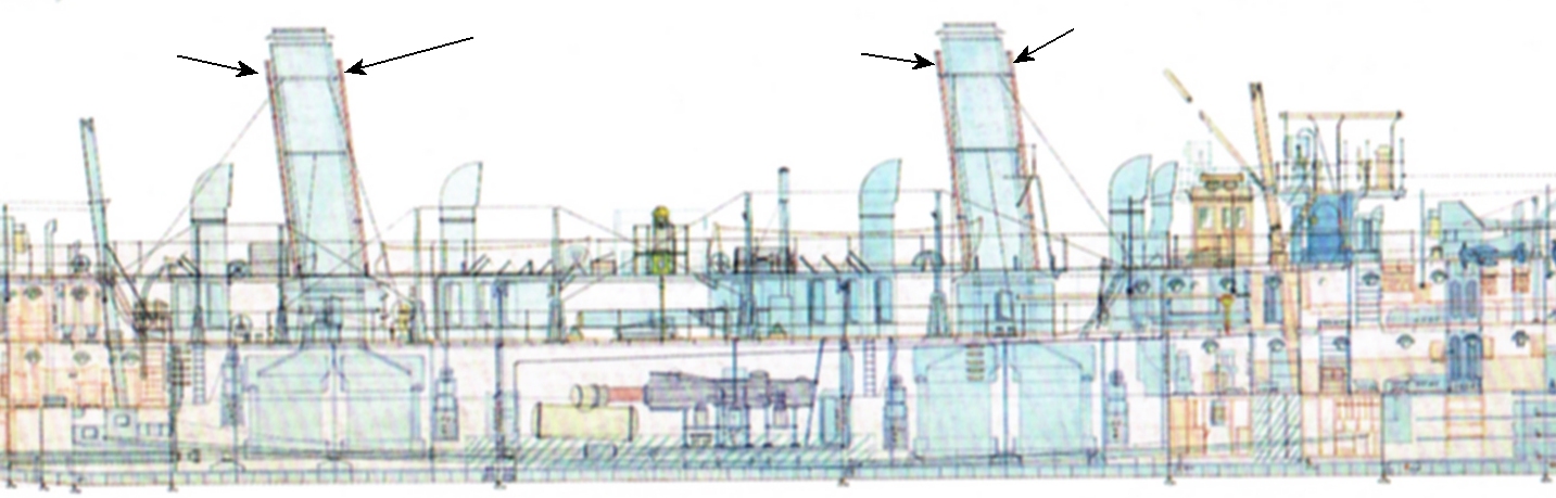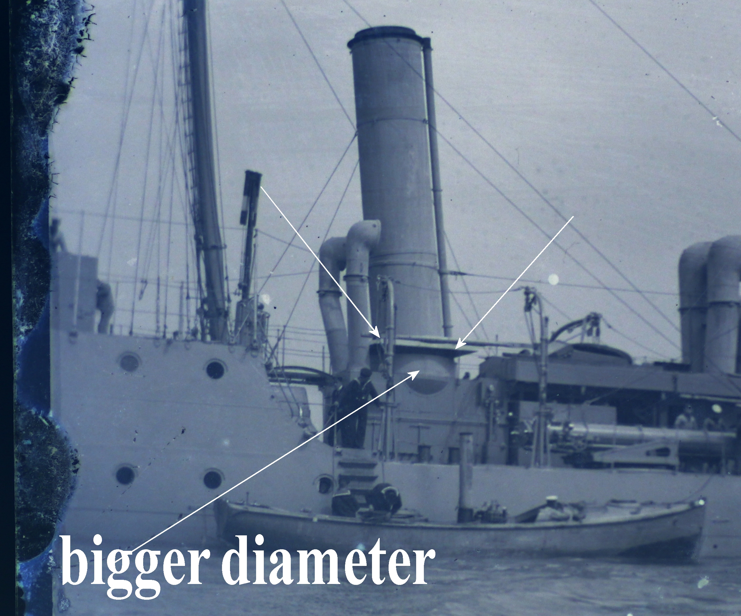 Checking photos on the PC and adding straight lines... it became apparent that on the real ship