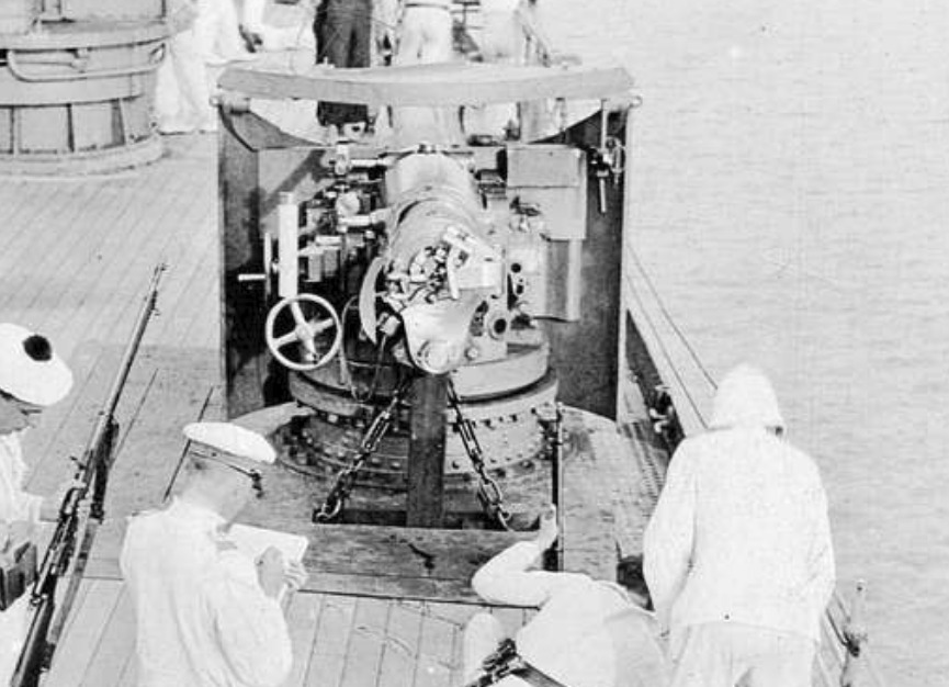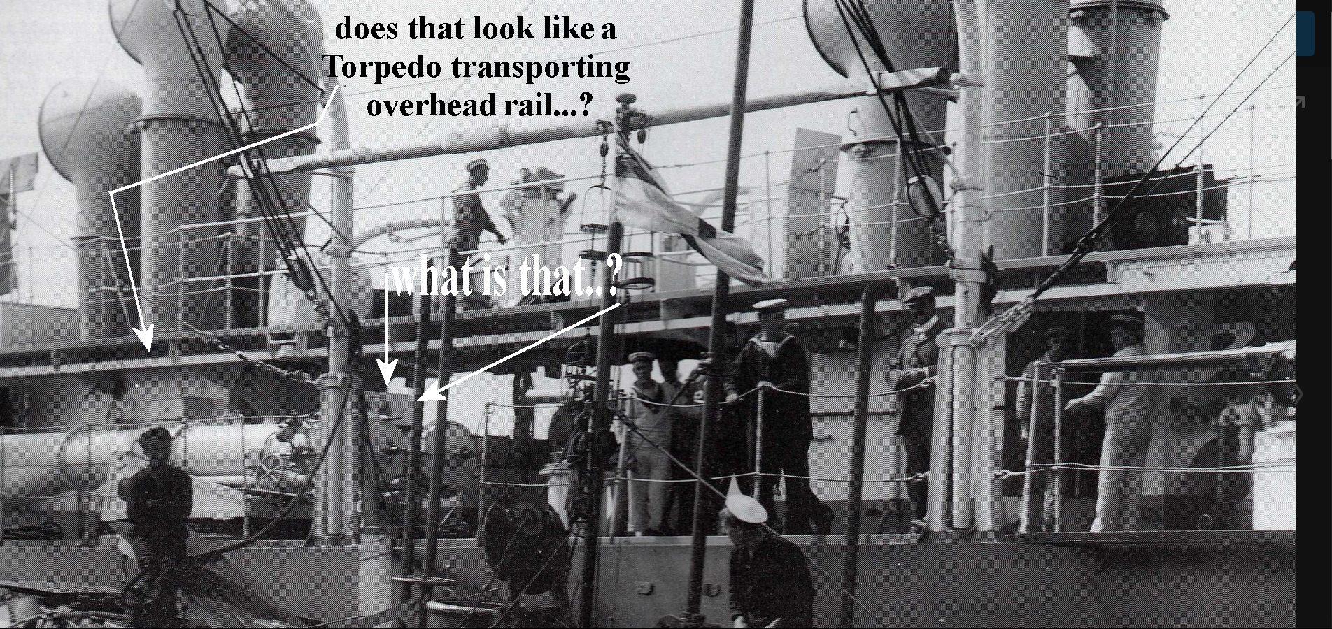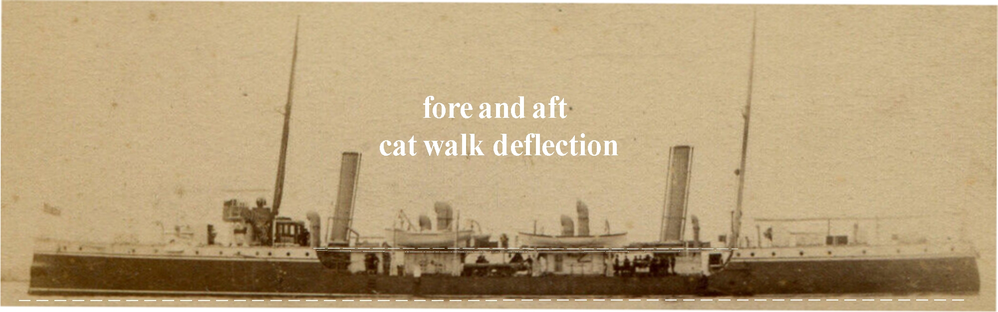 The raised Bow and Stern sections were connected by a long 'catwalk'... presumably for speed of transfer fore andaft