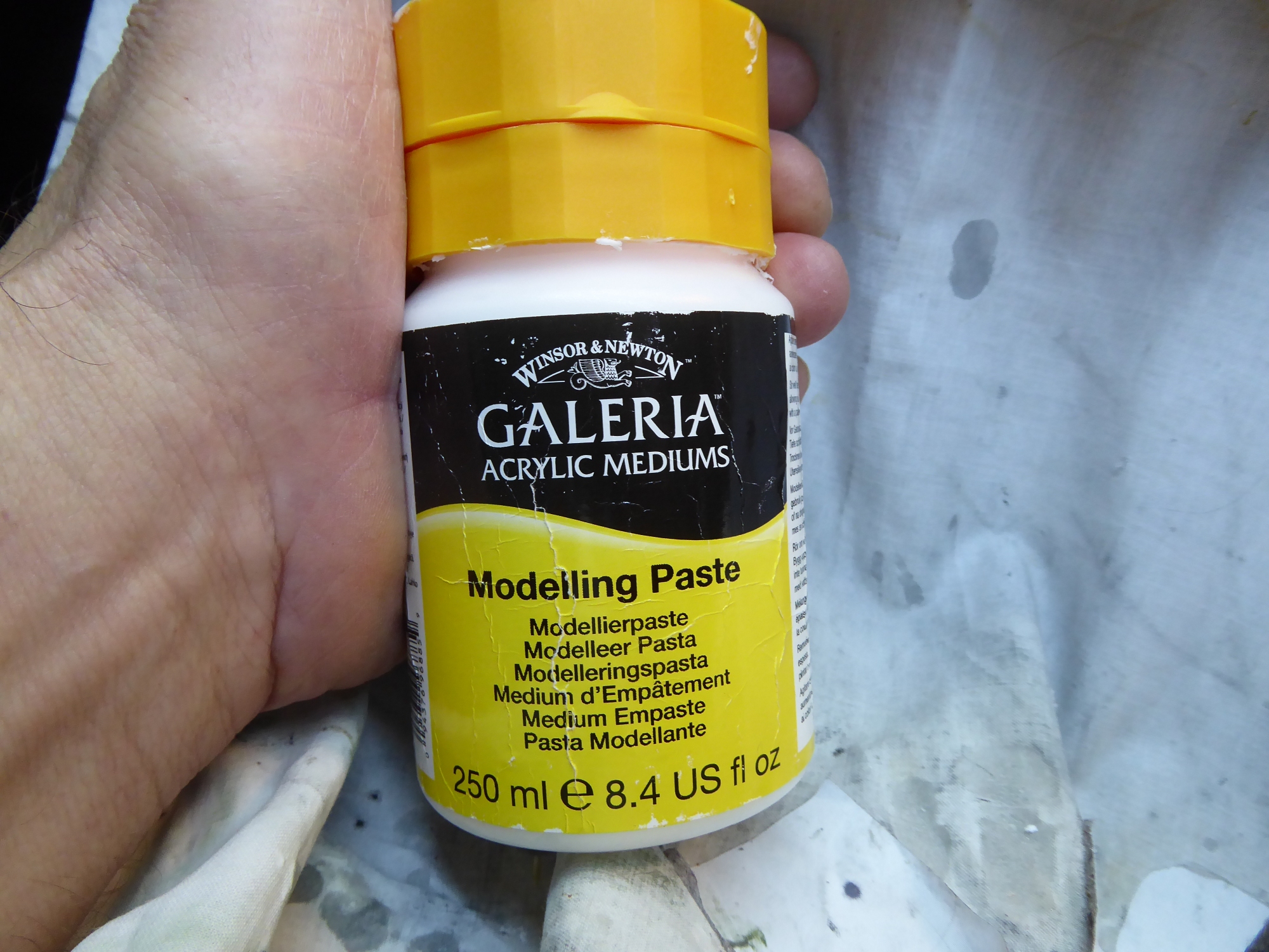 with the model firmly glued to its base I set to filling the gaps allround using the my trusty modelling paste from Windsor and Newton