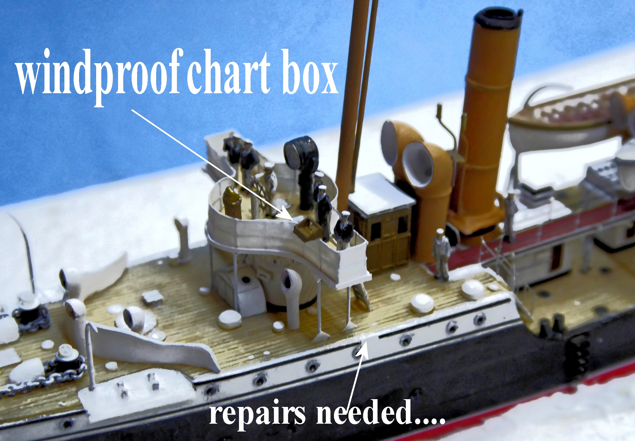 I was at the same time checking mast angles and clearances--I used a cocktail stick