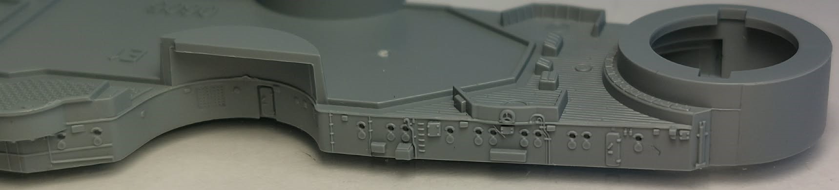 The following photos show additional elements of the superstructure, all beautifully detailed. Note the imitation of anti-slip surfaces on the various platforms, or, for example, the optics at the ends of the rangefinder arms.