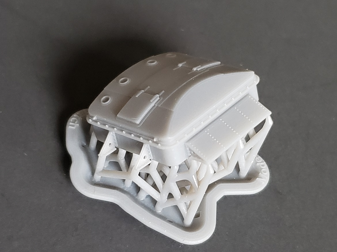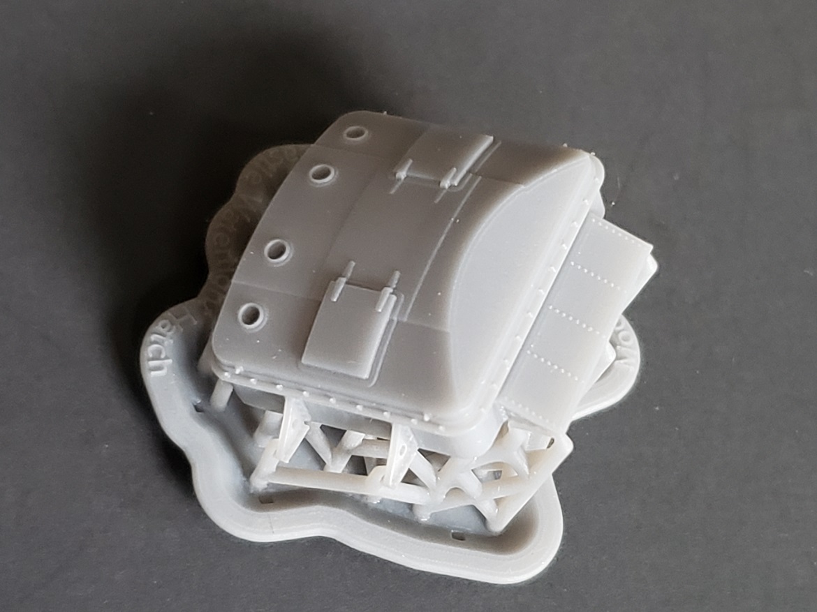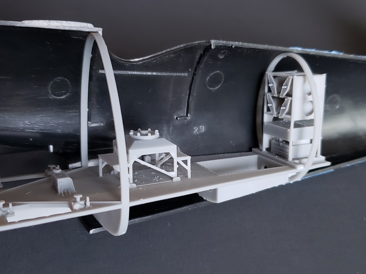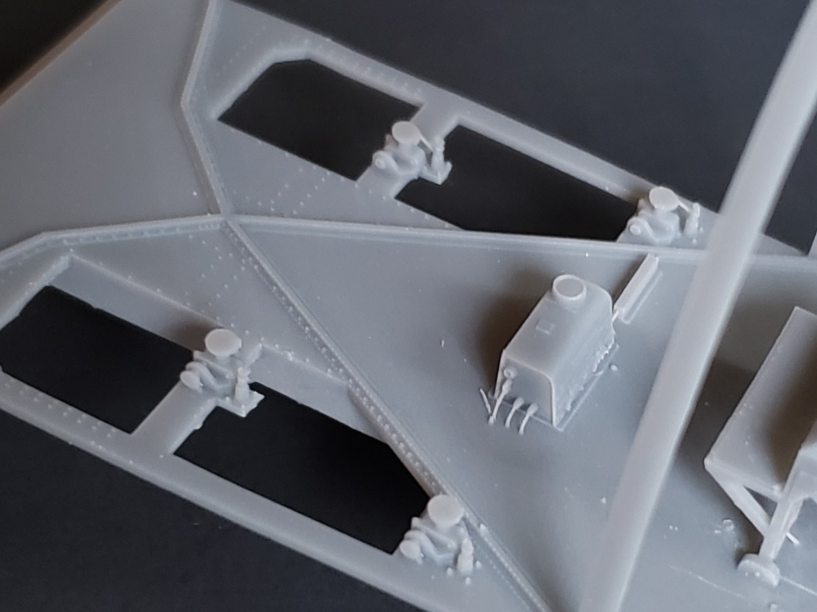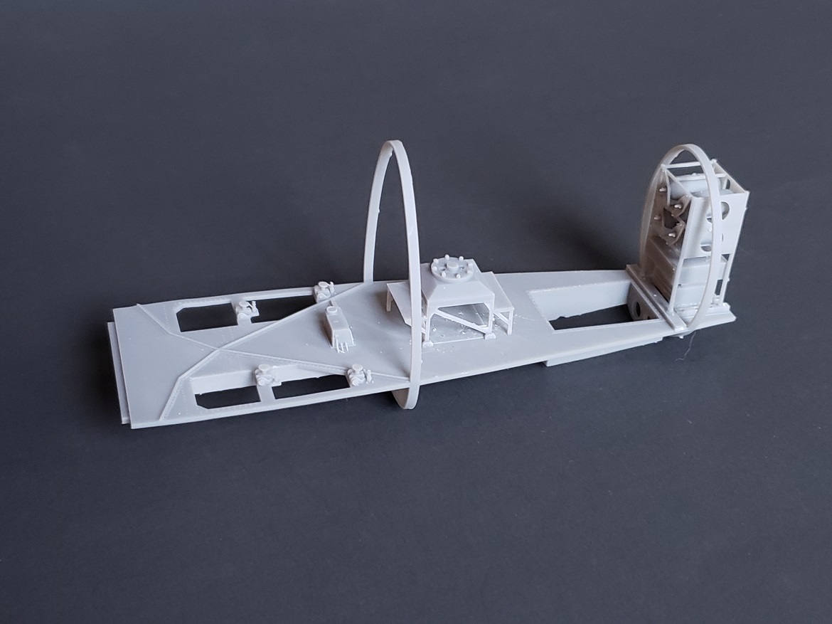 The cockpit and observer's station models shown in these photos are rough prints, only intended for test fit purposes. The models sold will be a bit cleaner. The test print observer's station model does not include the 20 mm cannons, ammo bins or observer's seat, all of which will be included in the actual models sold. The observer's seat stand shown here is the latter type, reinforced stand. A model with the early type stand will be made available, too.