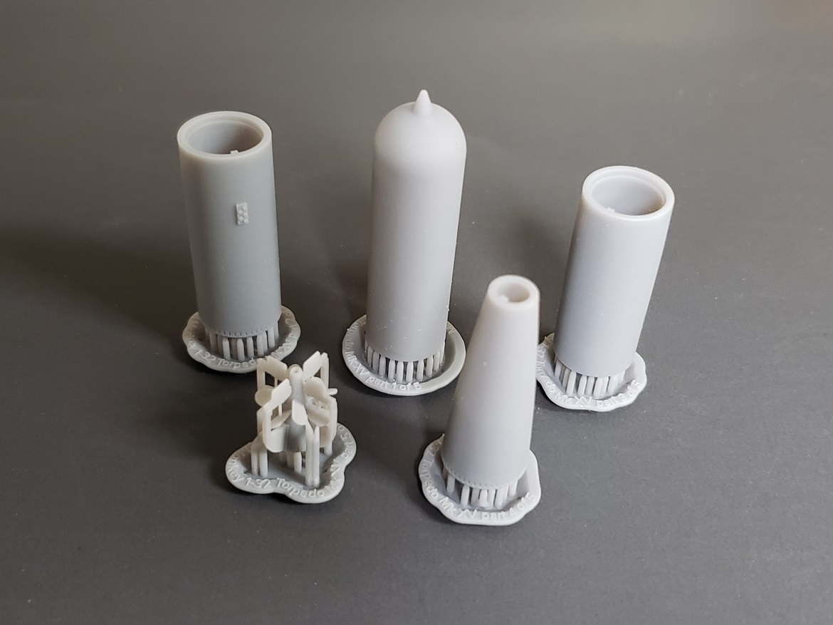 - 1/350 scale 5"/38 Mk.30 Mounts for Benson and Gleaves class destroyers, with one canvas-topped mount.