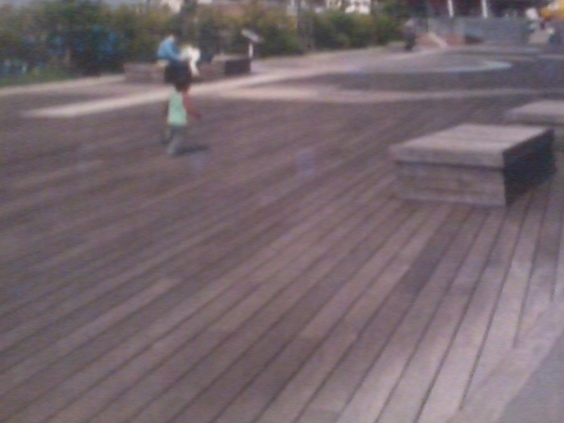 This is the picture I sent him or reference. This is the deck outside the Yamato museum in Kure. This picture was taken in 2009. So it should be about 4 years old so about as old as Yamato's deck at the end. If they made this deck out of hinoki cypress it very well could have looked like this w/o any paint or stain.