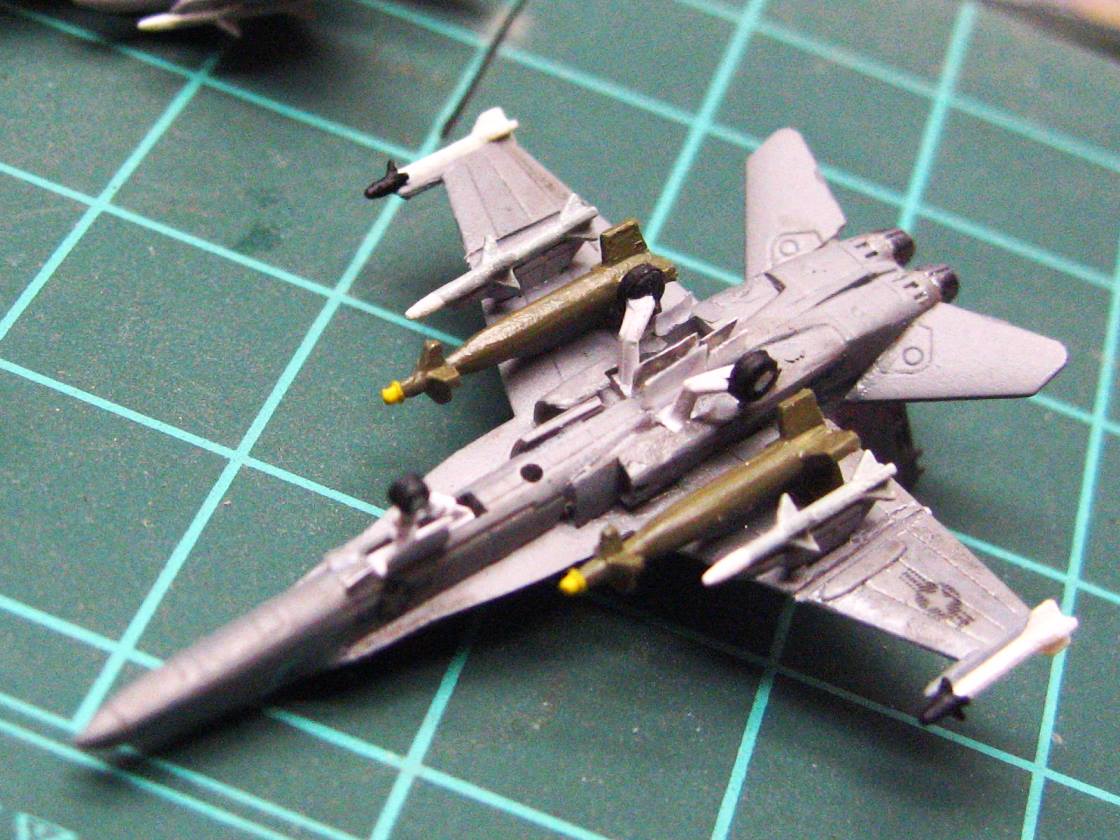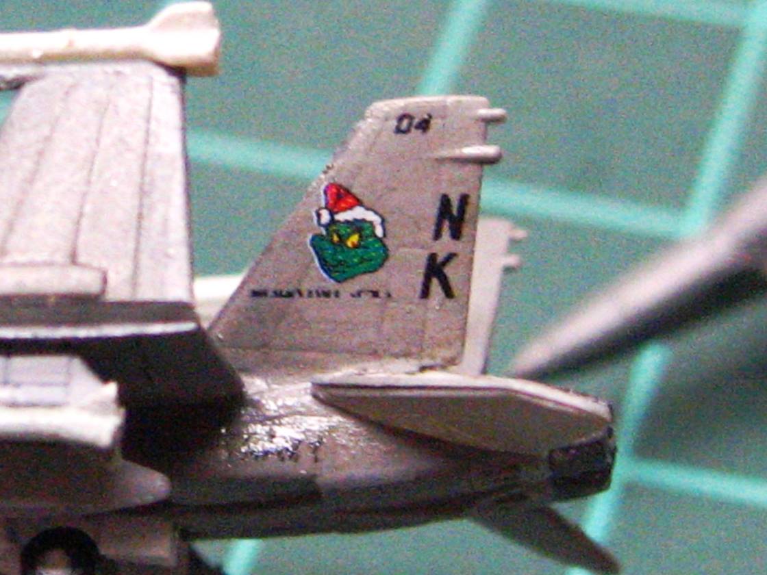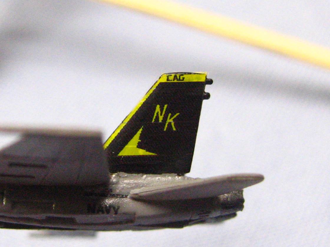 The airwing has been weathered, and decaling has commenced. I weathered this airwing a little heavier than normal, as this was a long and extended combat cruise, so the ship and planes took a beating.