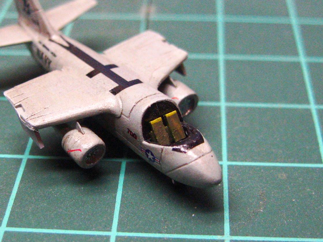 The tomcats and Vikings got their scratch built interiors. these look overly simplified, but I find that they are actually better and more visible through a closed cockpit than the PE interiors, so this is how I do it.