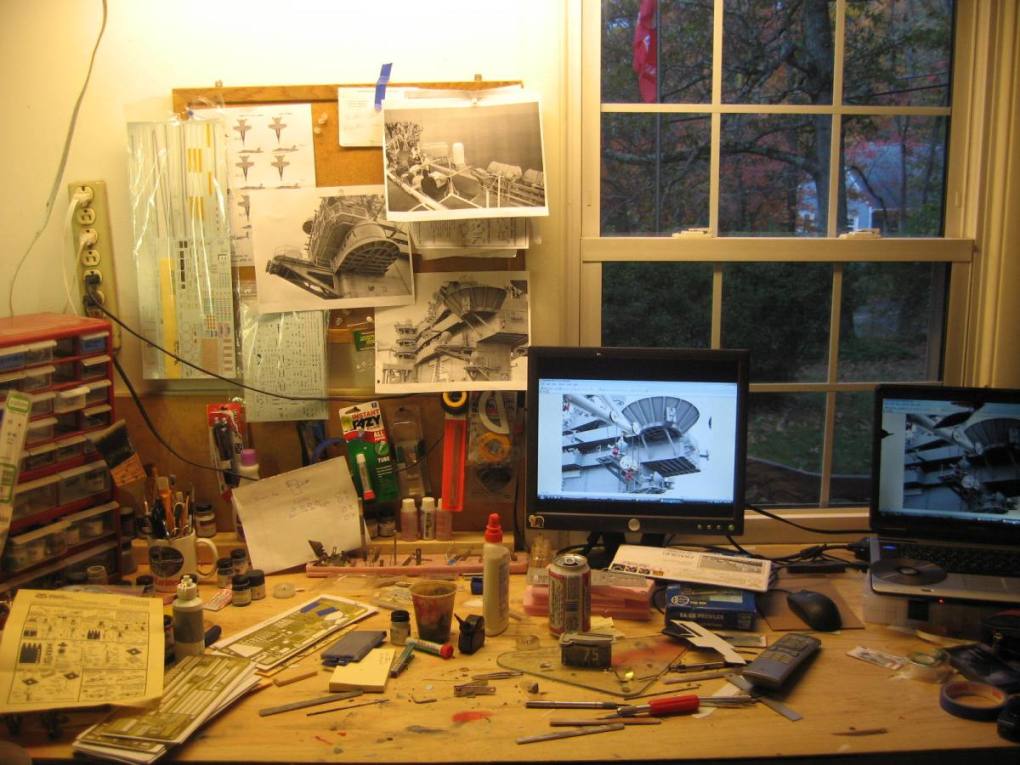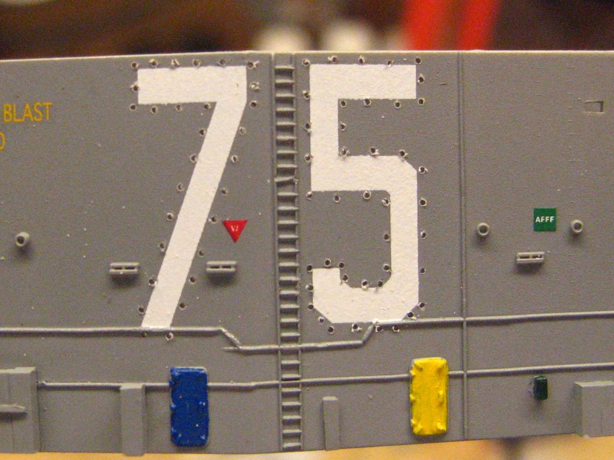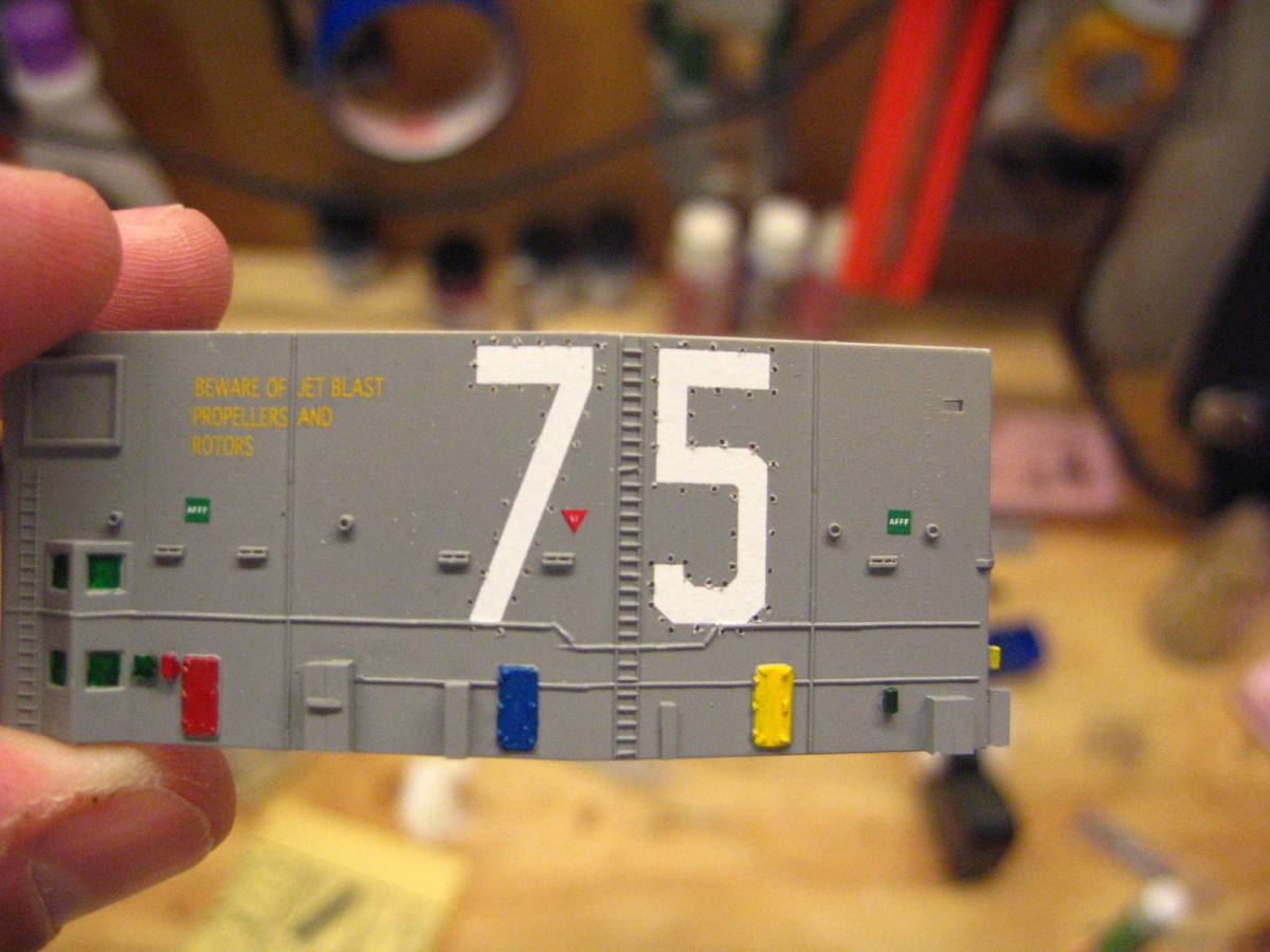 The island was modified, all the white is styrene, along with bits form a cell phone to add details found in photos of the truman to make it more accurate. If you pay attention to photos, ther is a lot of small details that you can paint to add color and visual interest to the otherwise monotone grey island. All colors I have painted are accurate to pictures of the Truman on the web.
