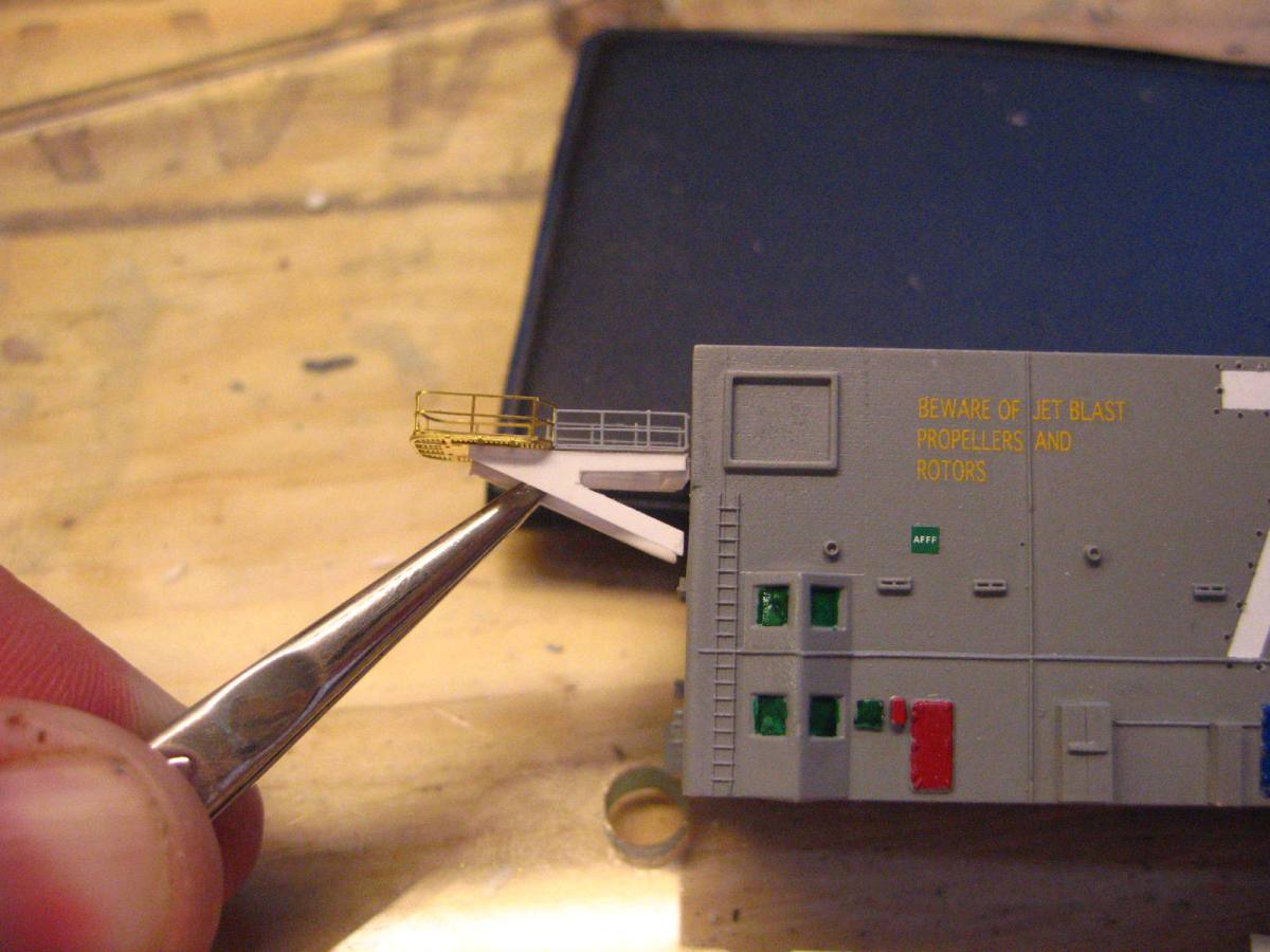 I used styrene and photo etch spares to make the stacomm platform for the front of the island, I think it came out pretty good if I don't say so myself!