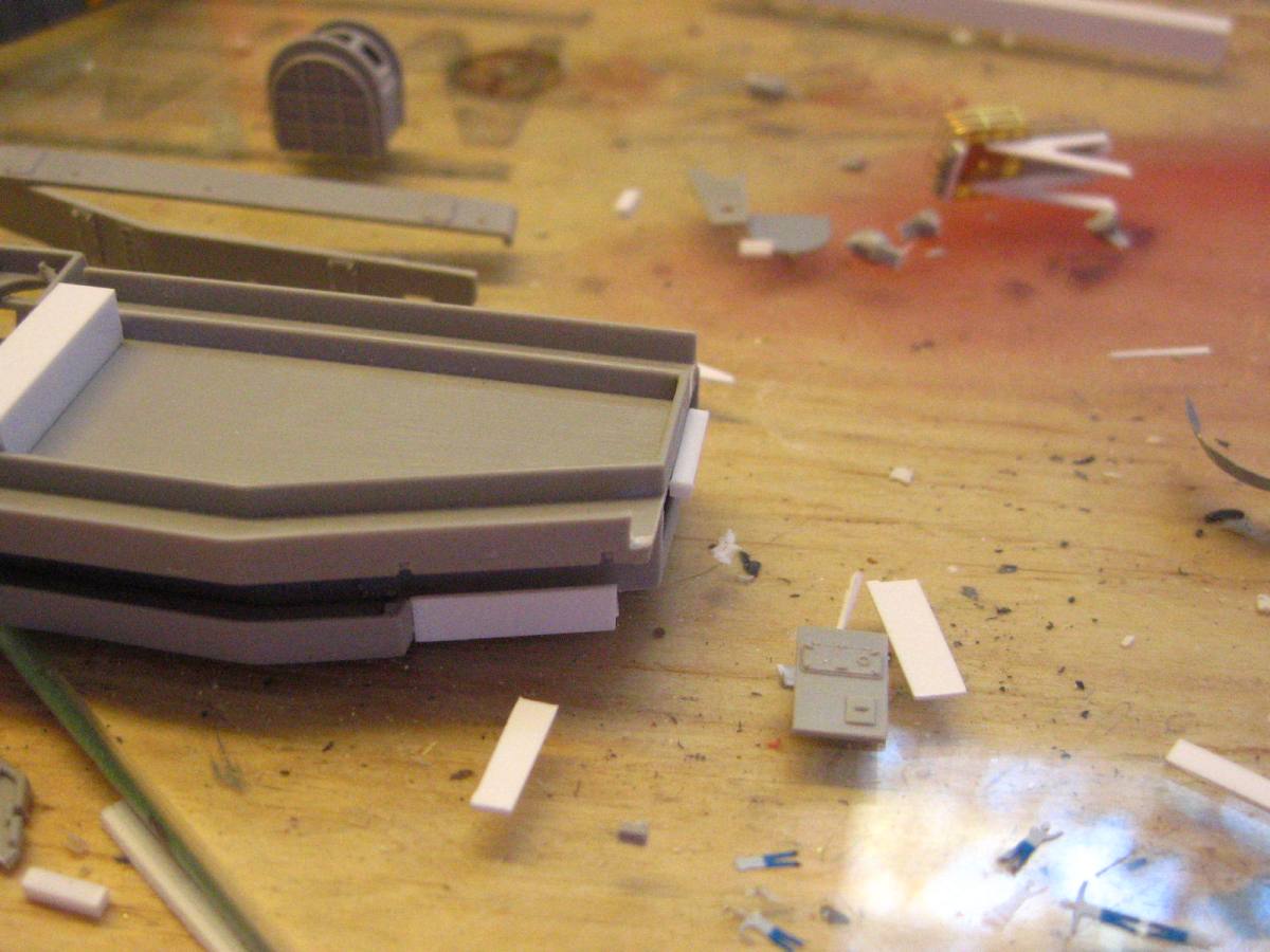 Thanks guys, I was a little nervous about all the scratchbuilding angles, but styrene is really forgiving so I have not had too many problems. I e mailed Kelly about his hull plating, and he gave me a couple pointers I am going to try, just hoping I don't have another issue with more paint and primer lifting off!