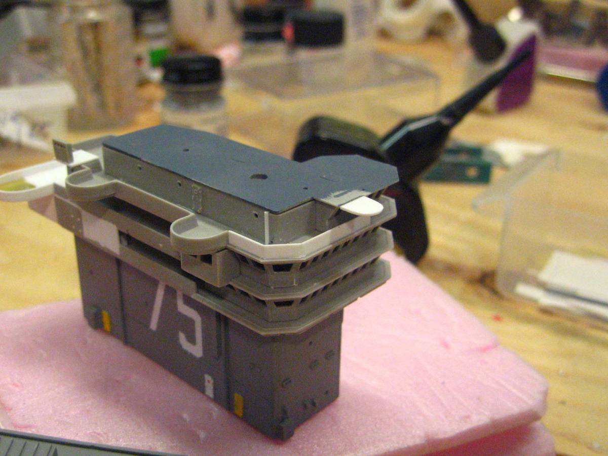 The modifications to the upper levels of the island are pretty straight forward, a large structure needs to be added to the rear of the first 2 levels, as well as the sea sparrow radar platforms.