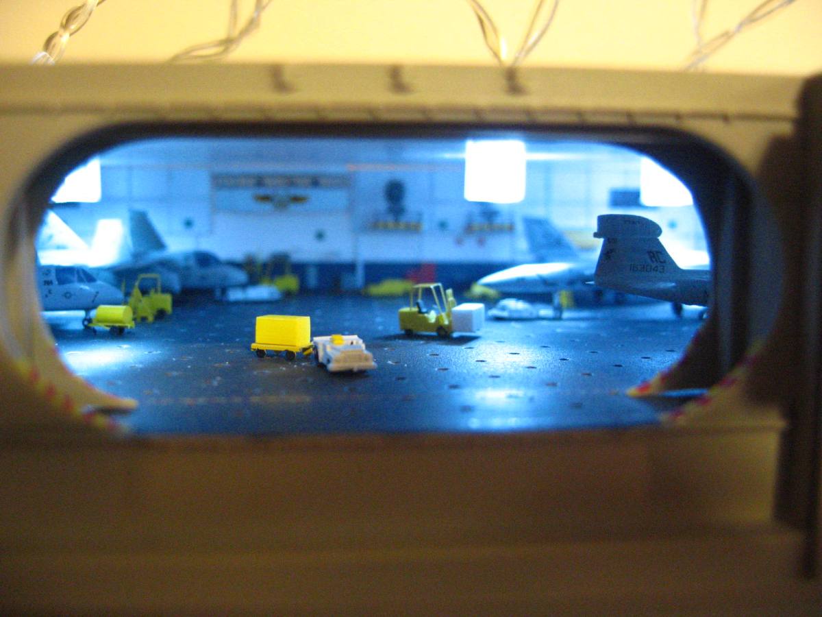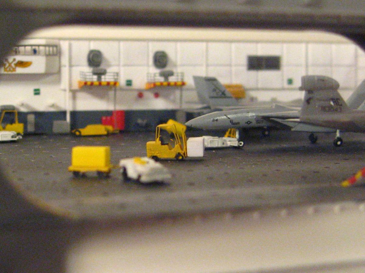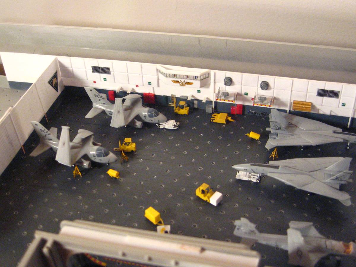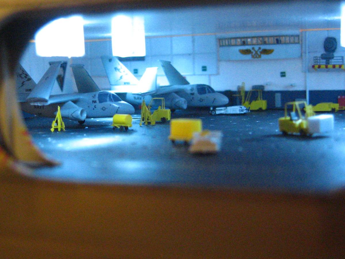The hangar is almost ready to be sealed up, I have a bit more detailing on the aircraft and deck equipment, then it is time to add the crew and seal it up!