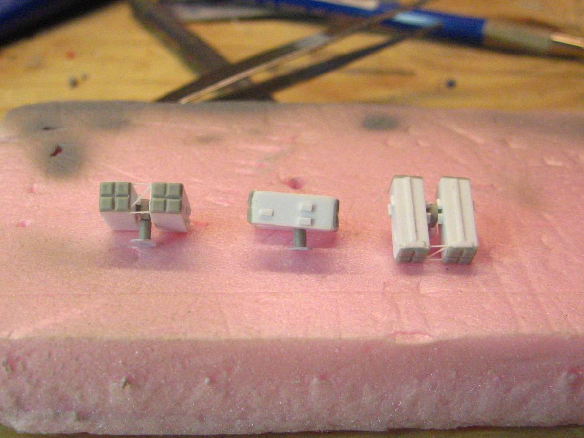 I scratchbuilt the 3 Sea Sparrow launchers, I think these are really close to accurate, not quite 100%, but pretty damn close. Each Launcher has 27 individual parts!