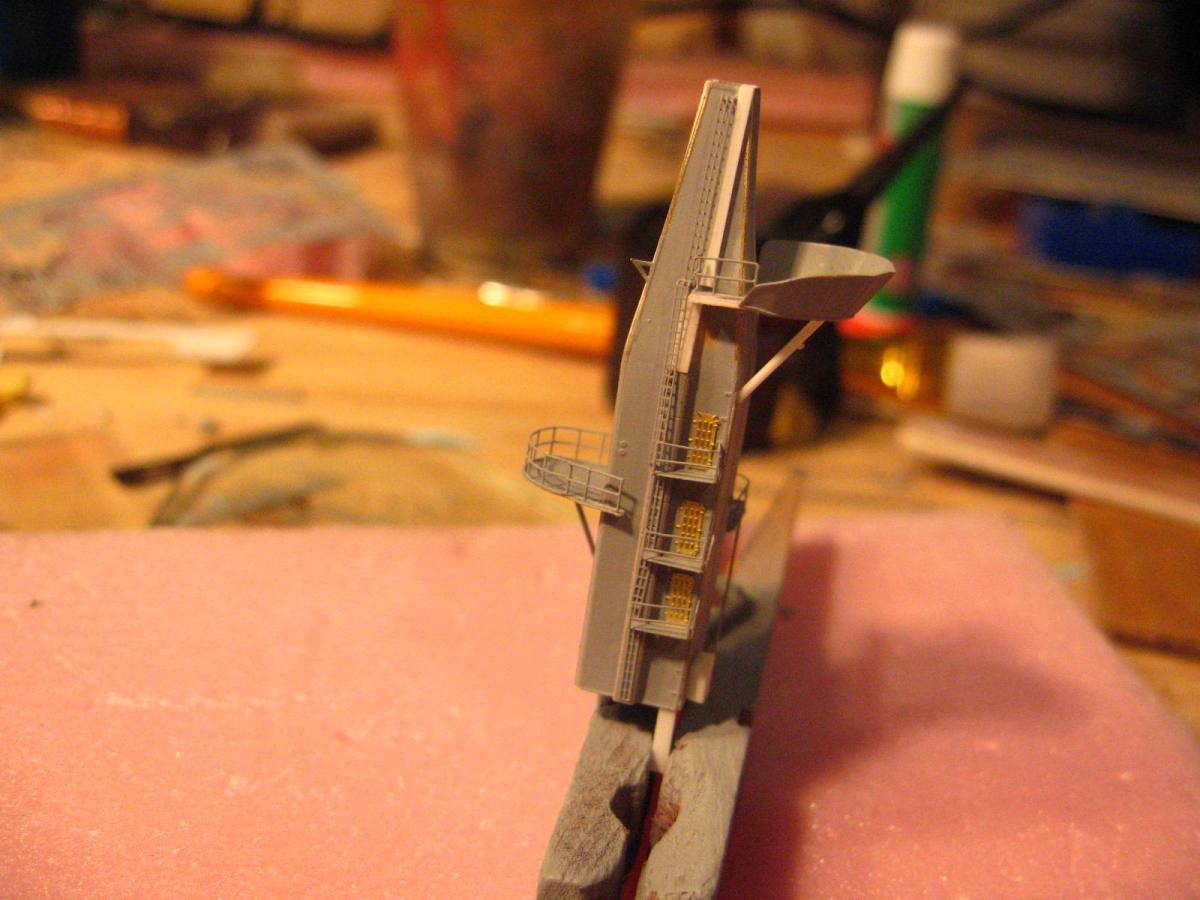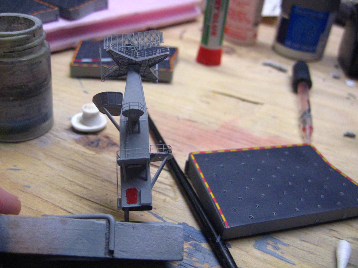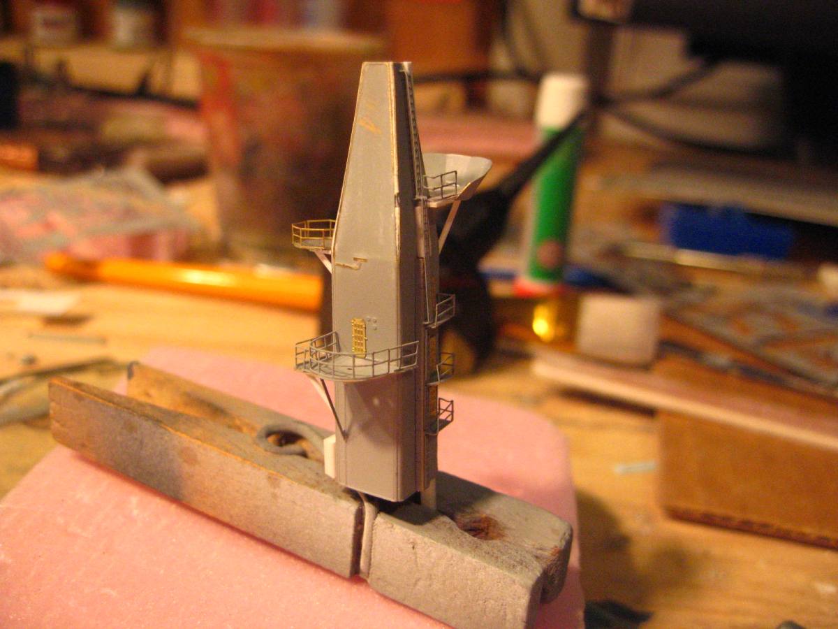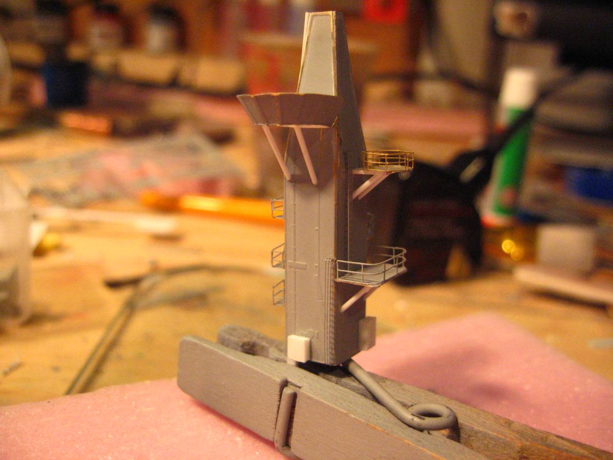 The aft radar mast was a project in itself. It is a combo of WEM, GMM, and Scratch. Each of the brass sets has good points and bad points, so I took the best from each, then added some bits of styrene to make it more accurate.