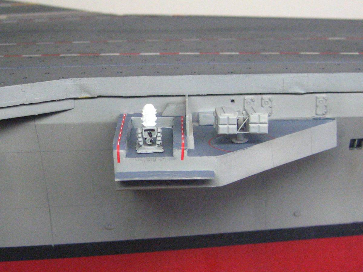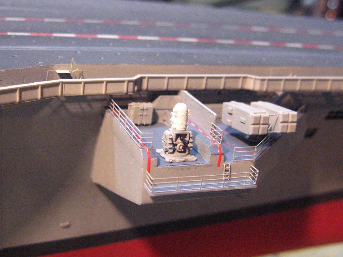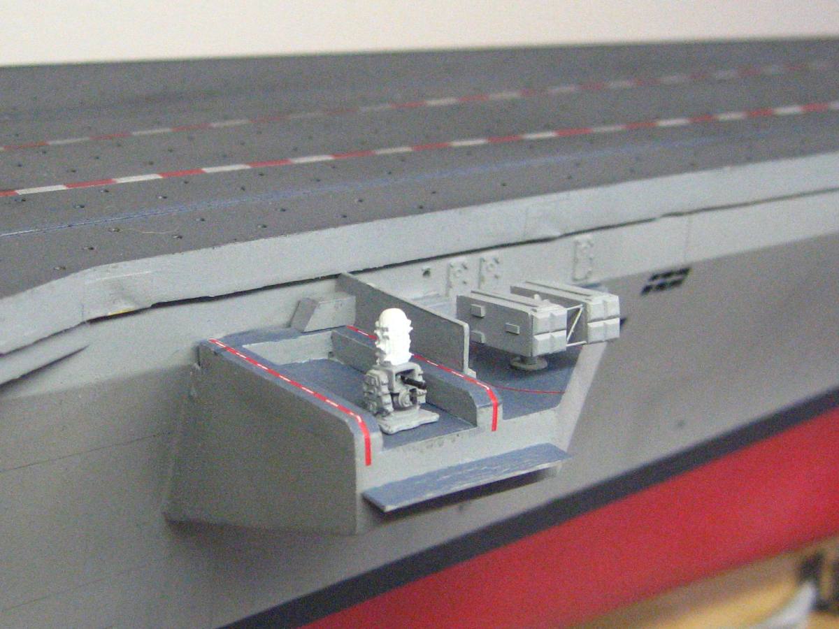 Finally I have completed some of the weapons sponsons and started detailing all of the catwalks. There are lots of little goodies that can be added to liven up the look of the catwalk; things like fire extinguishers, all the different colored hose reels, the ships' bell, saluting guns, and the list goes on. I think I have left the catwalks on all my other carriers pretty bare since I did not have good resources at the time. Well now I have plenty of good color pics, so I plan to cram everythign I can onto this one.