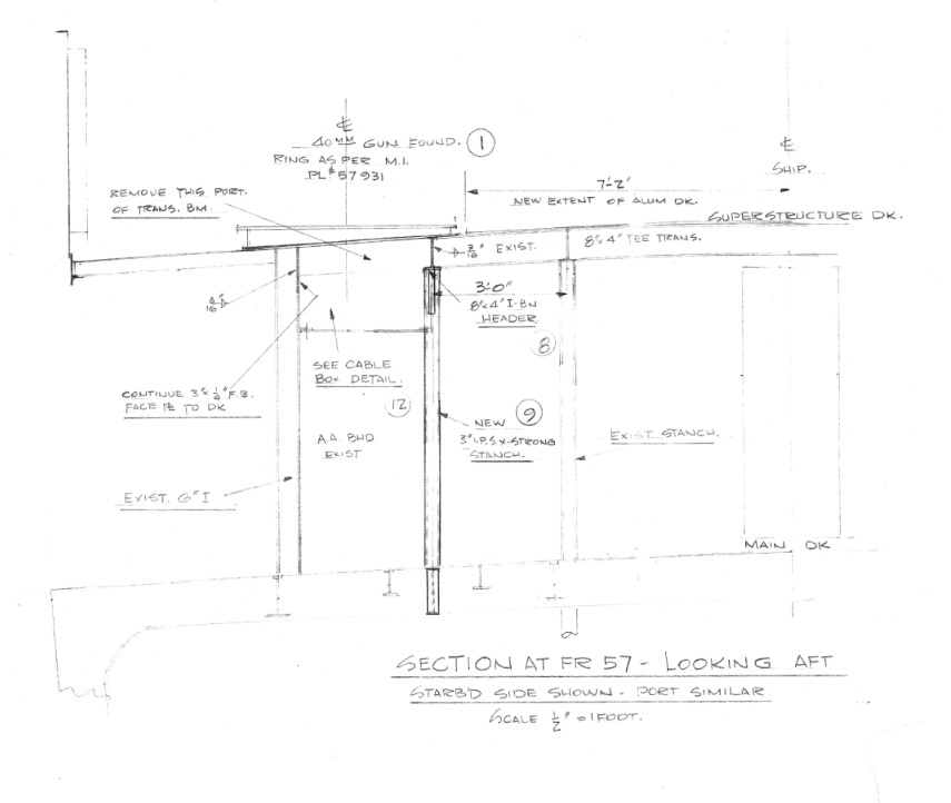 The BGP drawings like those available of SIGSBEE are useful, but have limitations. One; the BGPs were not dimensioned except for the frame numbers (one frame equals 21-in). Two; BGP drawings were updated as changes were made to the ship, and depending on who and skill of the person doing the updates ... the modified drawings may or MAY NOT be completely accurate. Normally they started out with very accurate basic drawings of the hull and superstructures. It is as the ships were modified that some changes may not be shown at all or are not to scale.