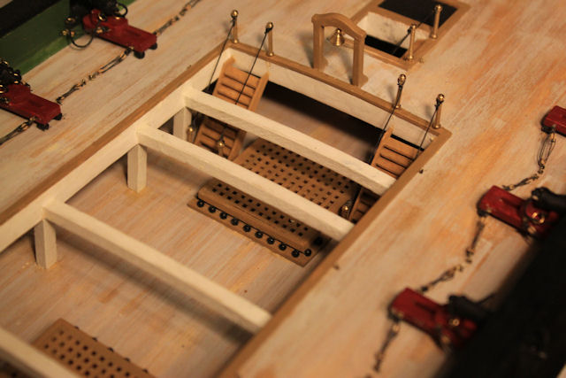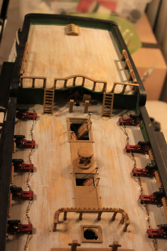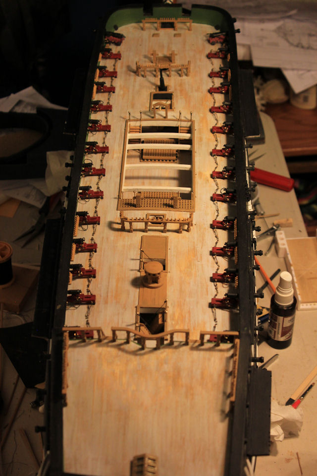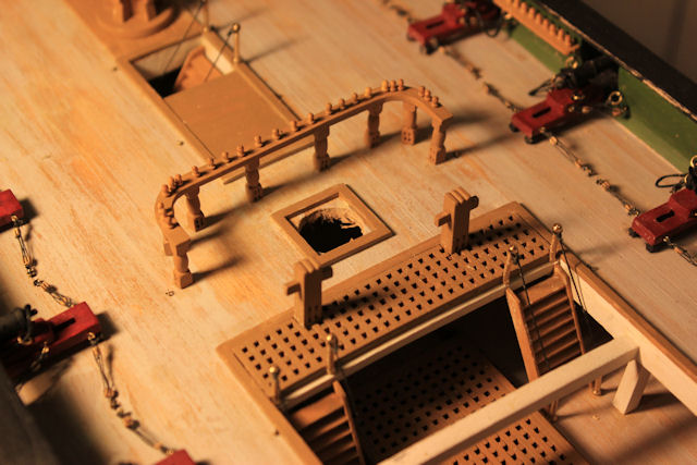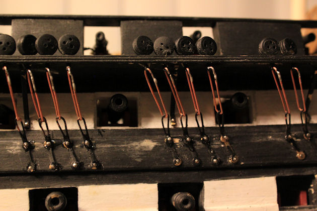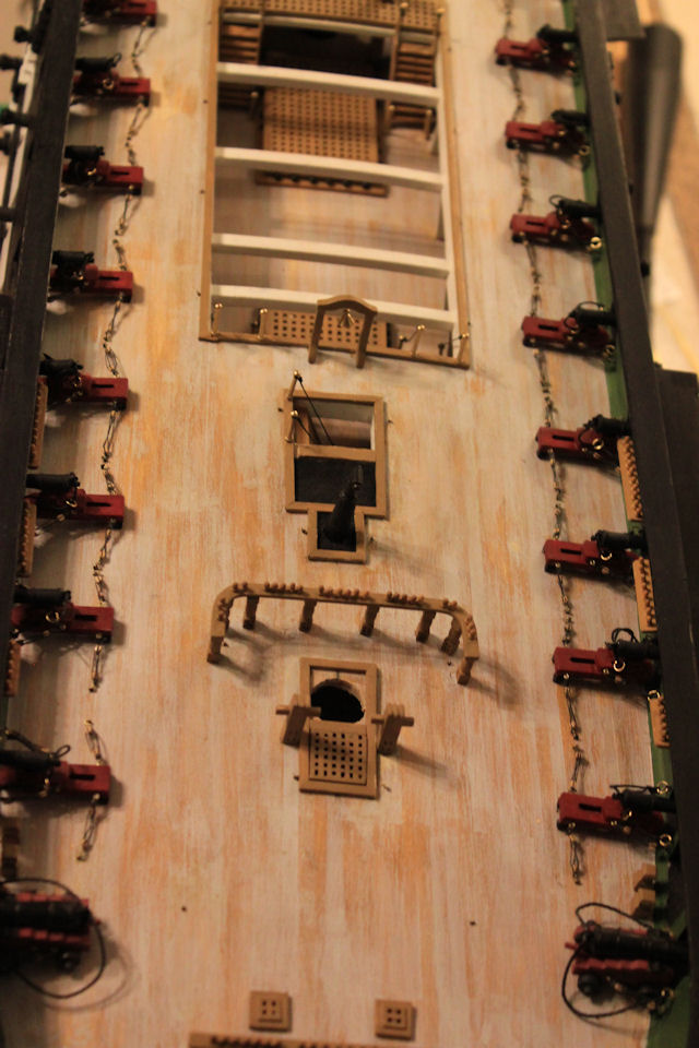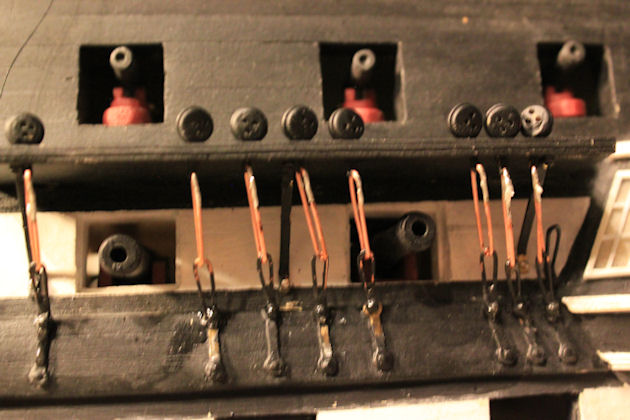 The crown molding above the windows and below the windows lines up with the bottom of the spar deck and the top of the middle gun deck. I copied the stern quarters directly from the Chappel plans of the Columbus as launched in 1819. I do not know what else to tell you. Posting some photos of the upper chains here. They need some smoothing with a dremmel tool and some straighening.