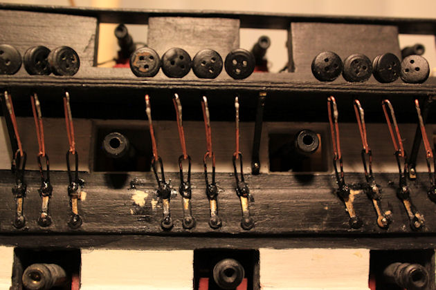 dahanks, thanks for the links I will try to look through them as time goes on and my ankle heals, but not til after Christmas I don't think. Mean While I have all my gun port door hinge straps installed, I am working on the eyebolts and rings inside and out. As I work on the half doors, I cannot find anything regarding a method they would use to pull the bottom half back up. Is there a system on the inside like the one on the top half has on the outside, or do they just reach outside and pull it up into position and dog it down?